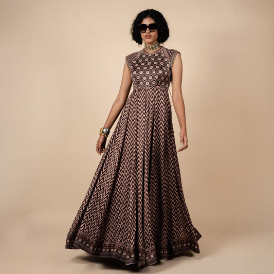 Umber Brown Printed Anarkali | PANJ