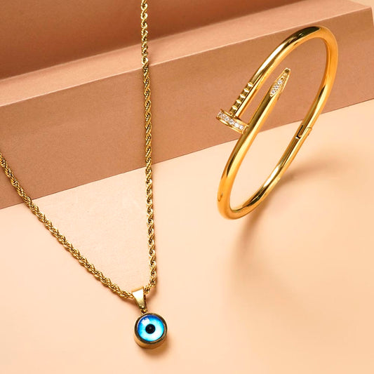 Evil Eye Necklace & Nail Bangle Bracelet Combo Set