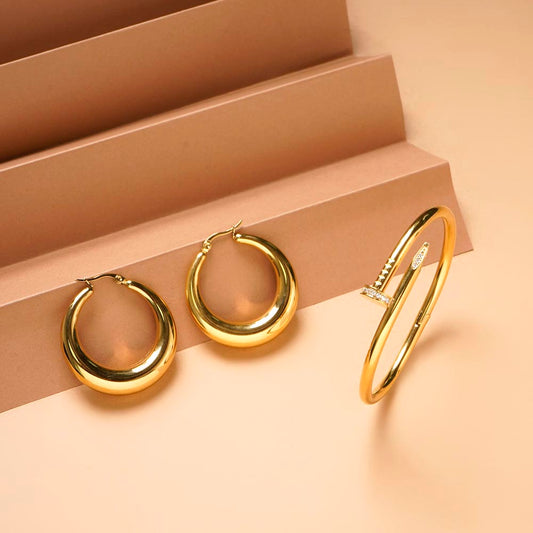 Nail Bangle Bracelet & Chic Chunky Hoop Earrings Combo Set