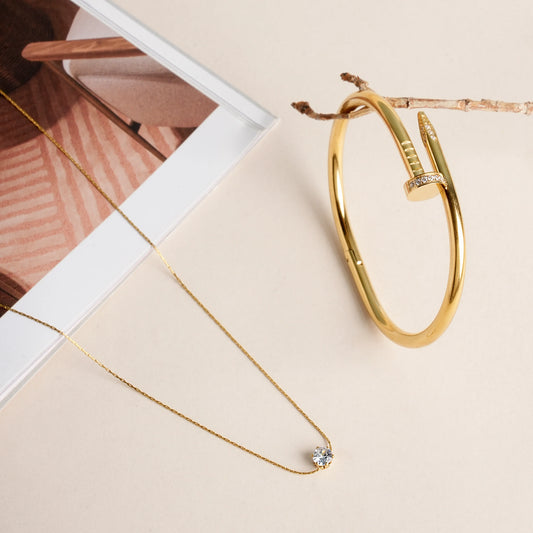 Nail Bangle Bracelet & Round Solitaire Necklace Jewellery Set