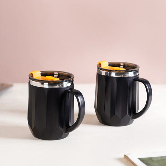 Desk Coffee Mug With Lid Set Of 2 Black 400ml