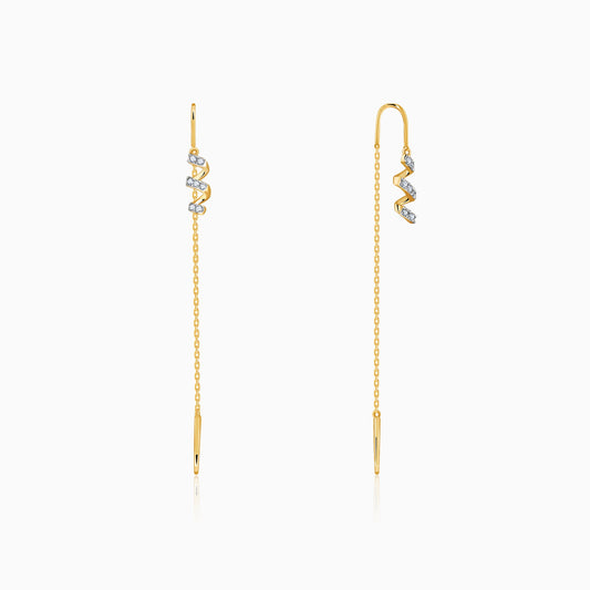 Gold Spiral Cascade Sui Dhaga Laab Grown Diamond Earrings