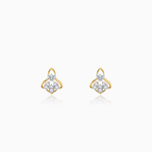 Gold Cute Floral Diamond Stud Earrings