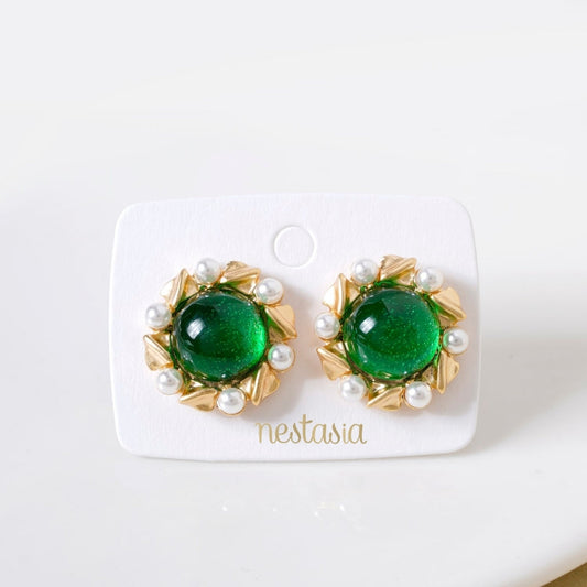 Oval Front Back Drop Earrings Green