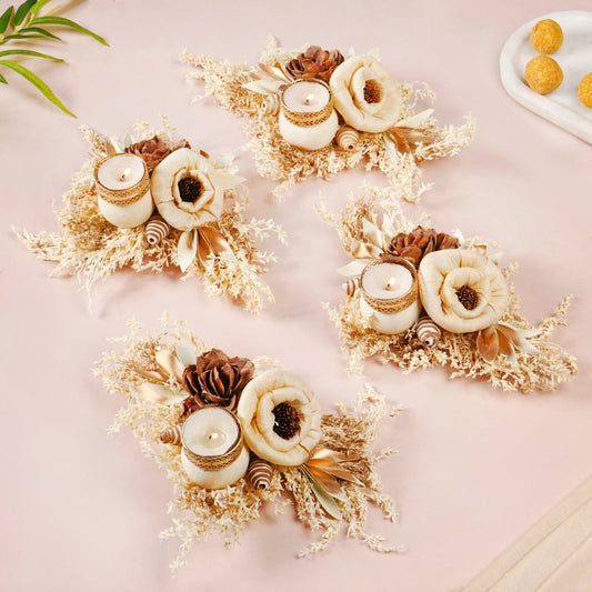 Natural Tealight Candle Holder Brown Set Of 4