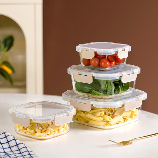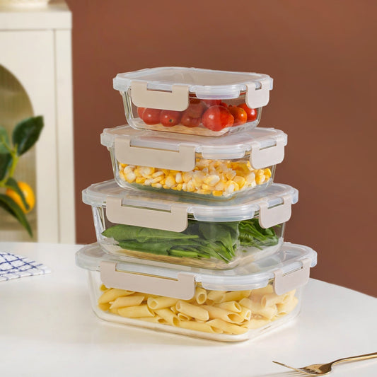 Nestro Airtight Food Storage Square Container Set Of 4 Beige