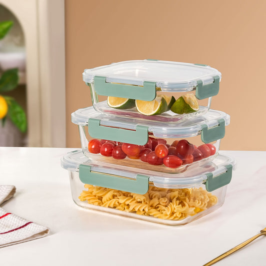 Nestro Microwave Safe Airtight Storage Box Set Of 3 Green