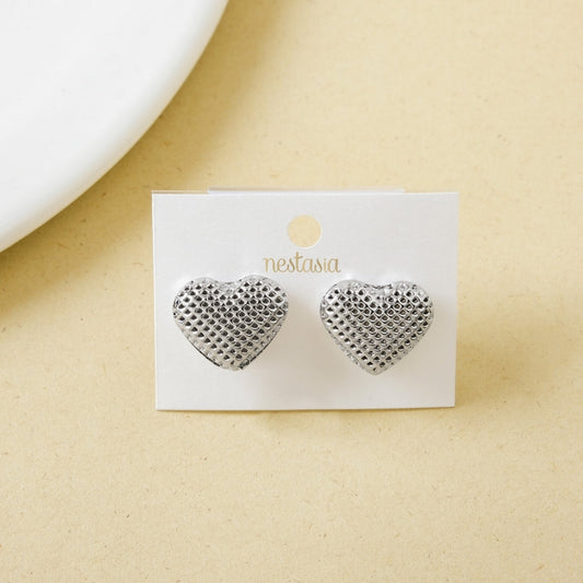 Net Textured Silver Heart Studs