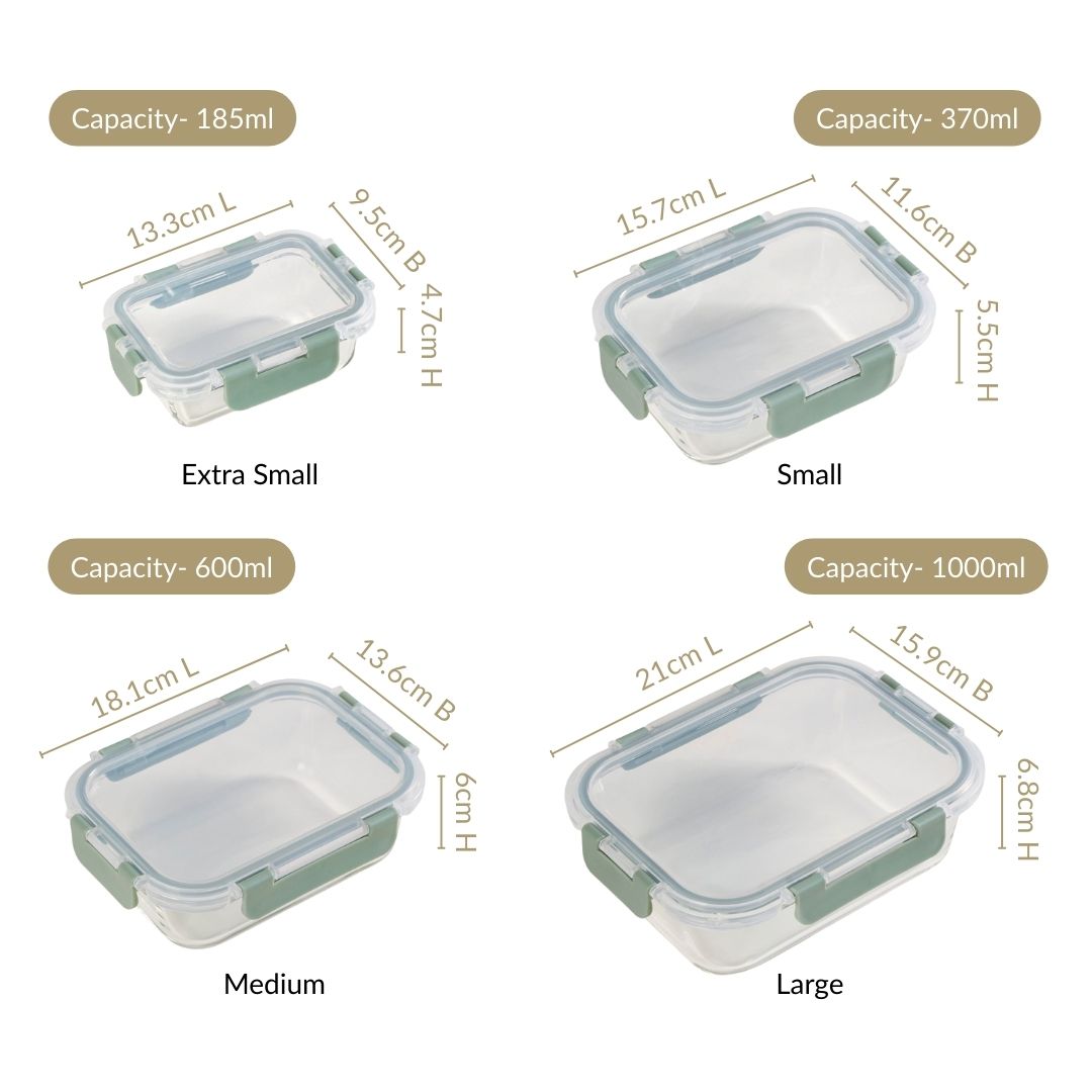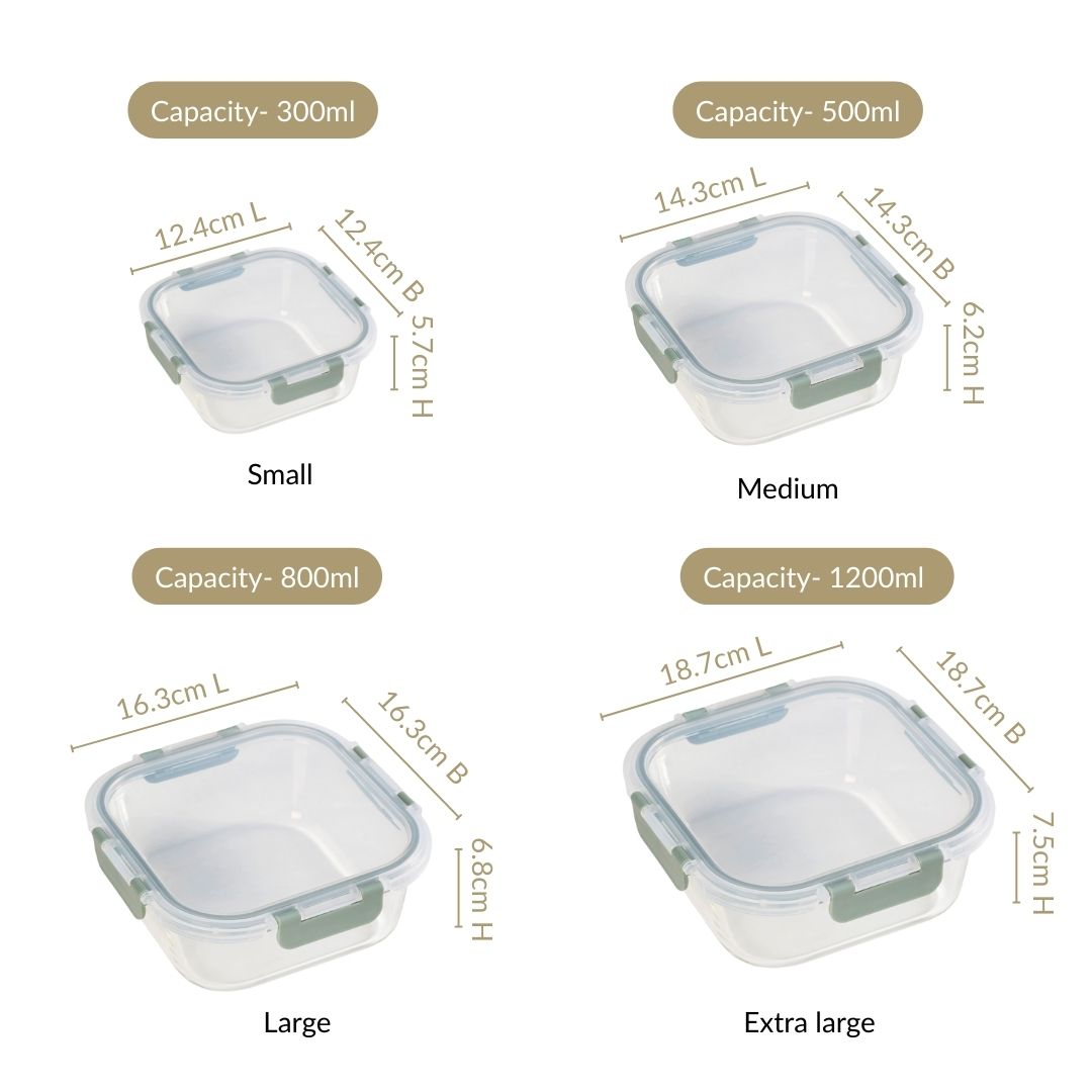 Nestro Airtight Food Storage Square Container Set Of 4 Green -