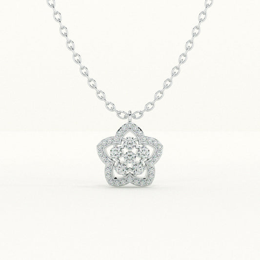 Floral Halo Diamond 925 Sterling Silver Necklace
