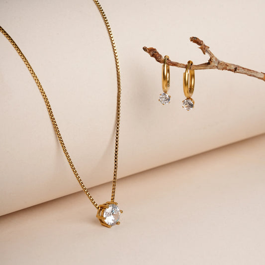 Round Solitaire Necklace & Athena Solitaire Hoop Earrings Jewellery Set