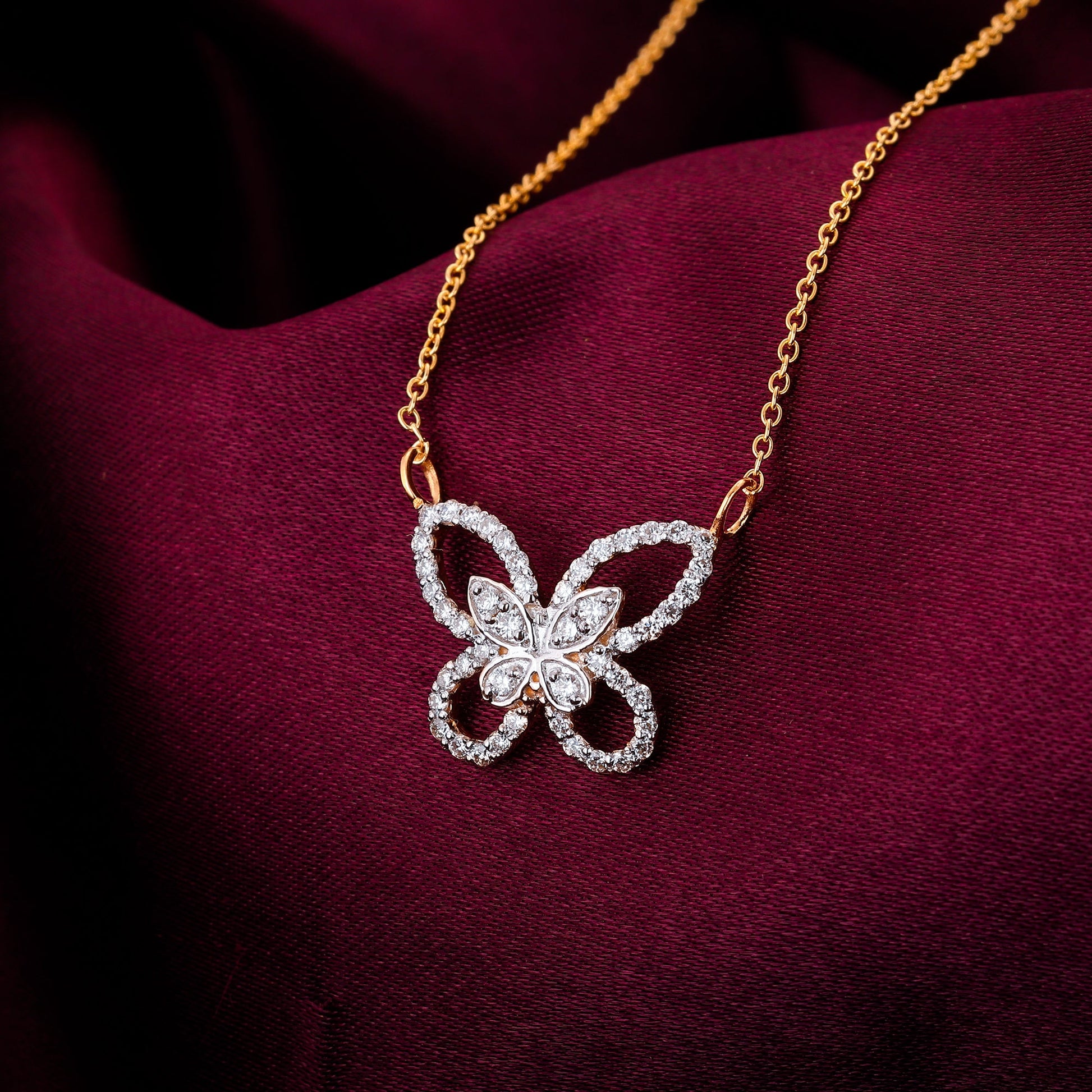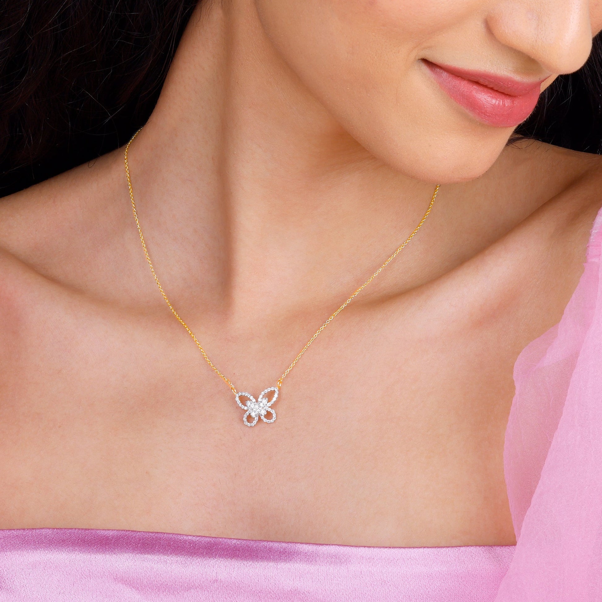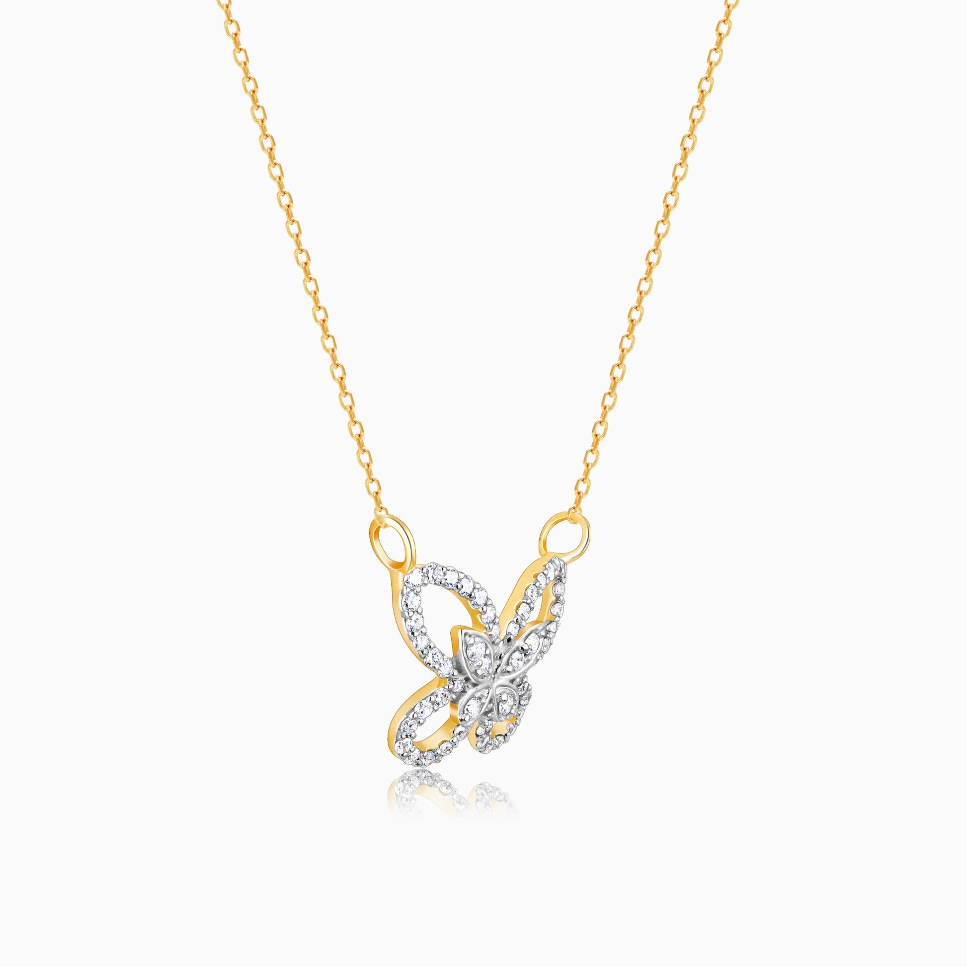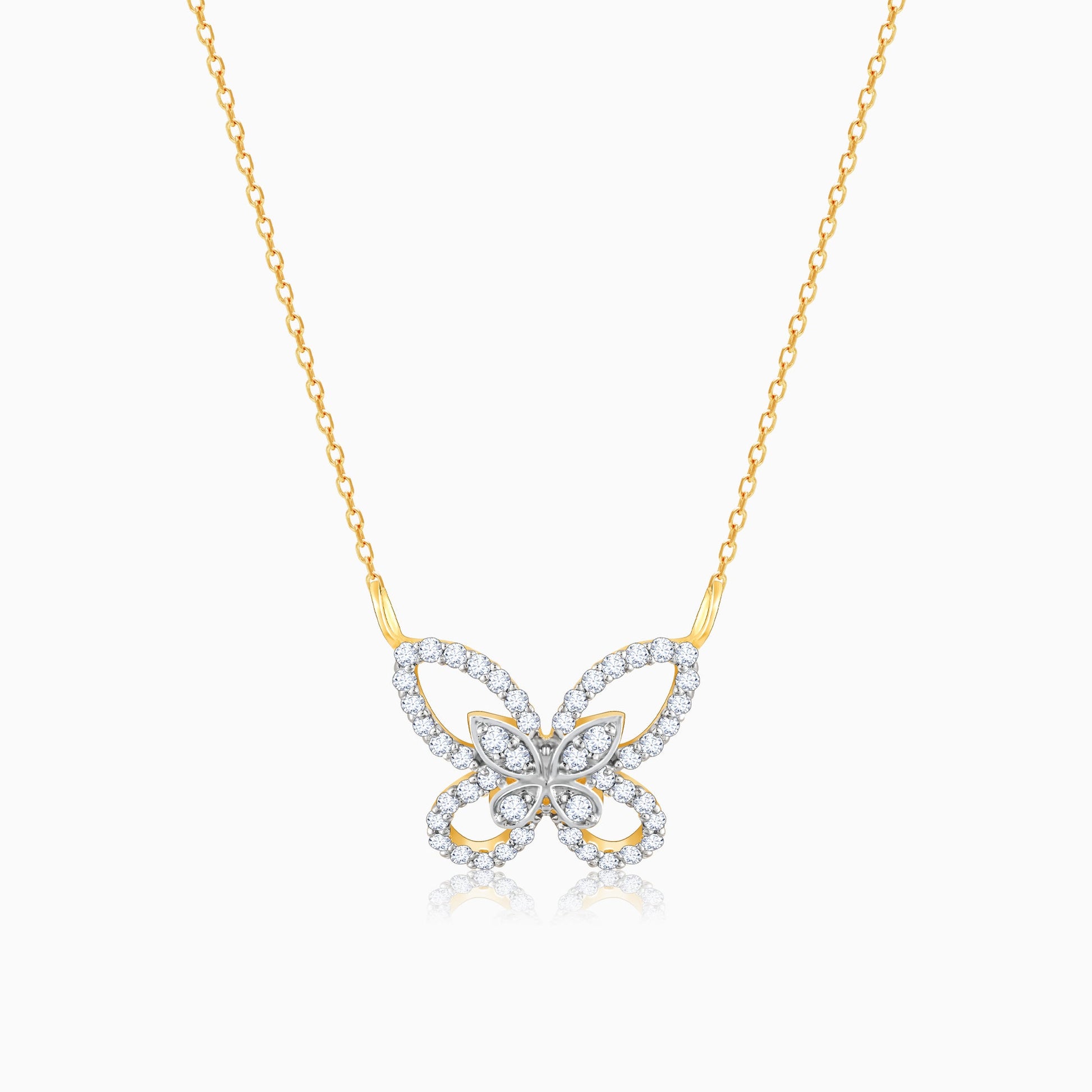 The Gold Captivating Butterfly Diamond Necklace is inspired by a butterfly, gracefully navigating the winds of life, inspiring others with its vibrant colours and gentle presence.