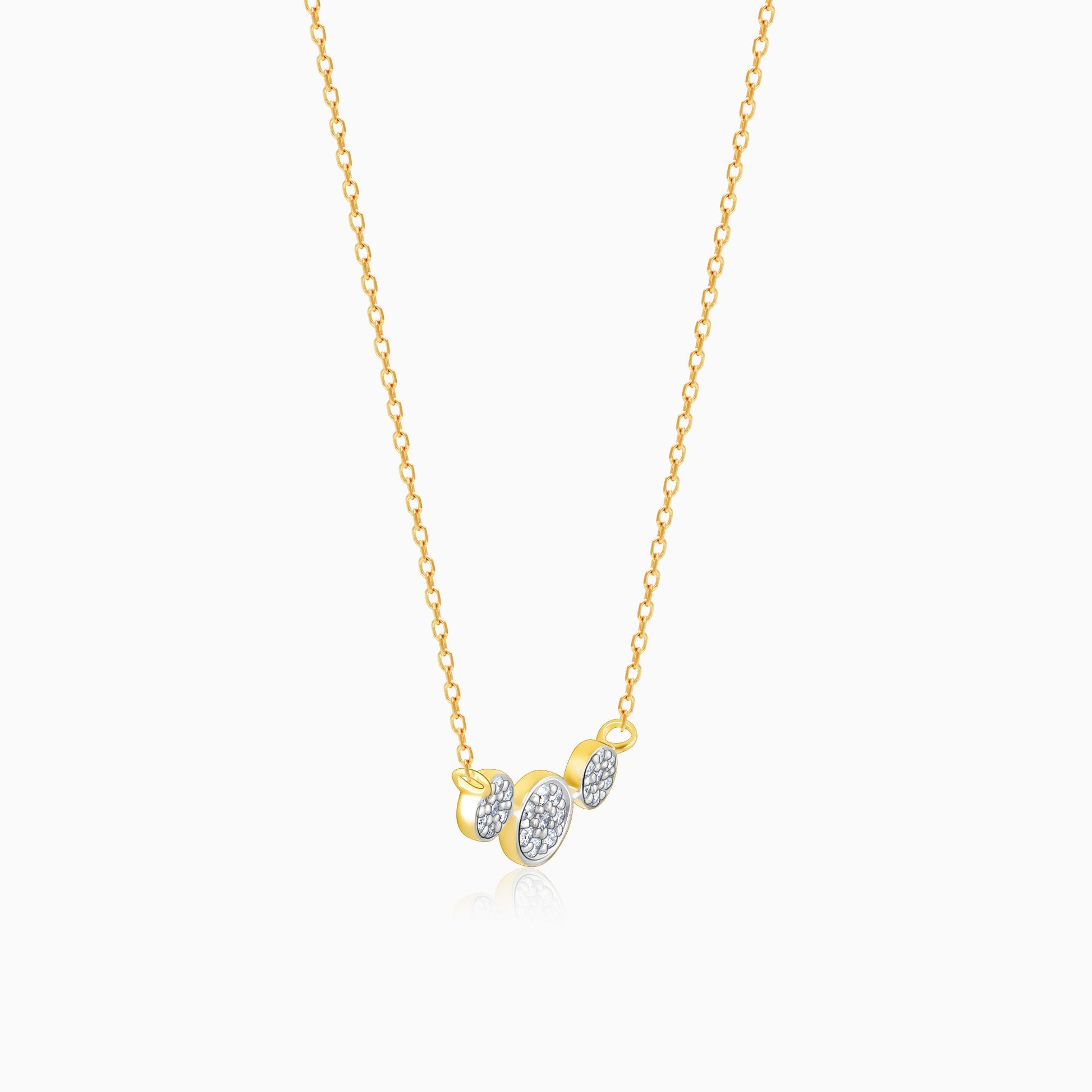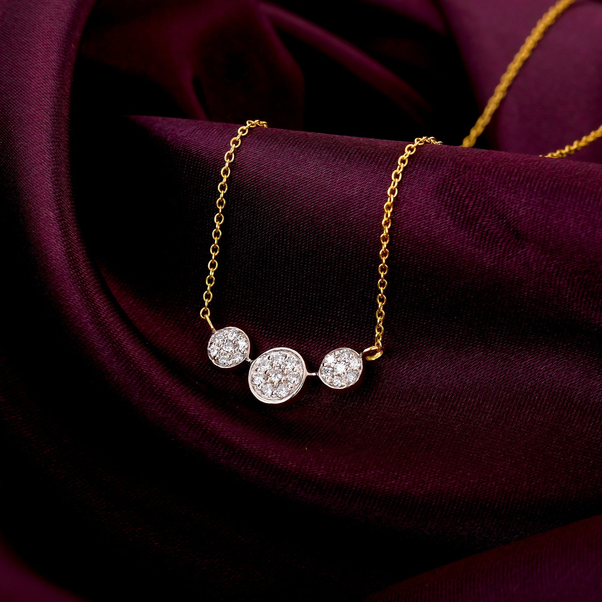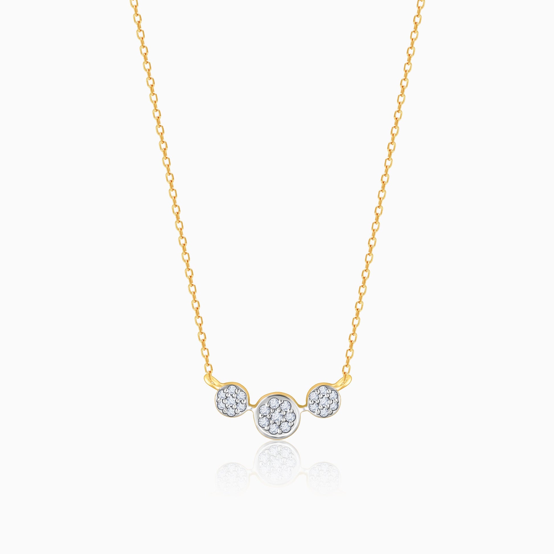 This necklace has three circles connected with each other and is set with diamonds.