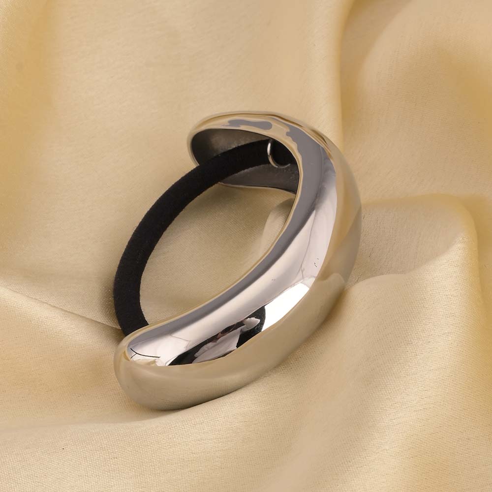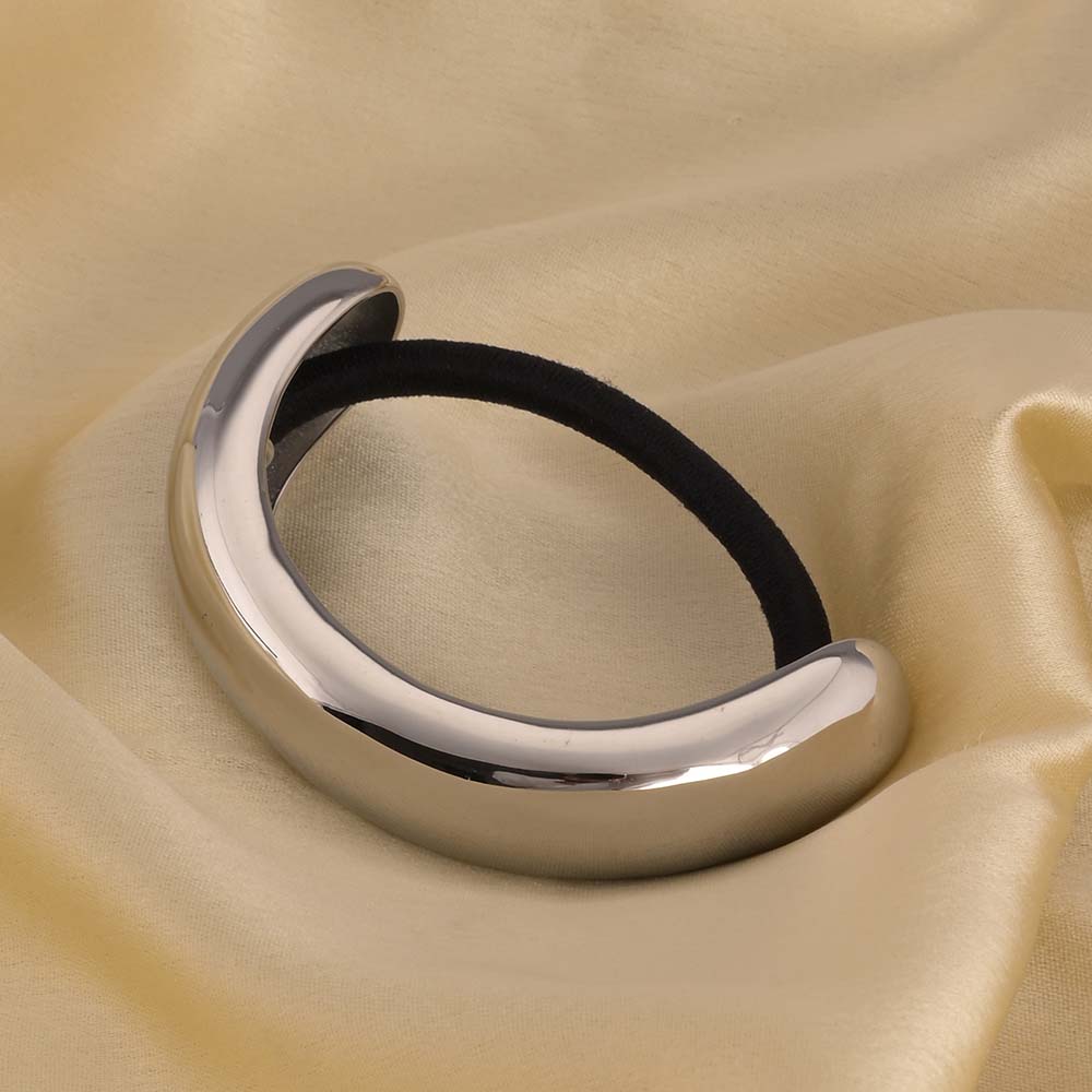 Artful and eye-catching, the Abstract Curve Hair Tie is a sculptural statement for modern styling. Crafted from stainless steel with a rhodium-plated finish, its fluid, abstract design transforms simple hairstyles into high-fashion looks. Ideal for ponytails, buns, or half-up styles, this versatile piece also doubles as a bold cuff-like wrist accessory, making it a standout addition to contemporary wardrobes.