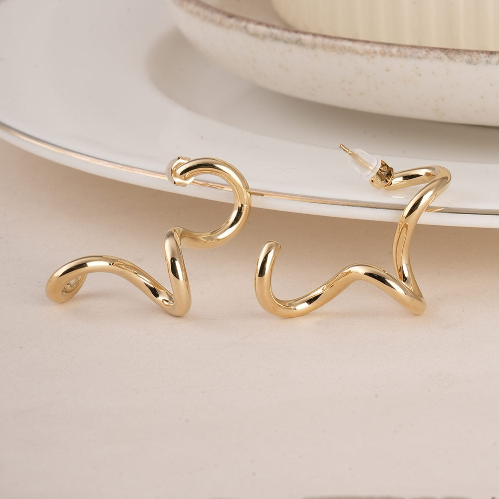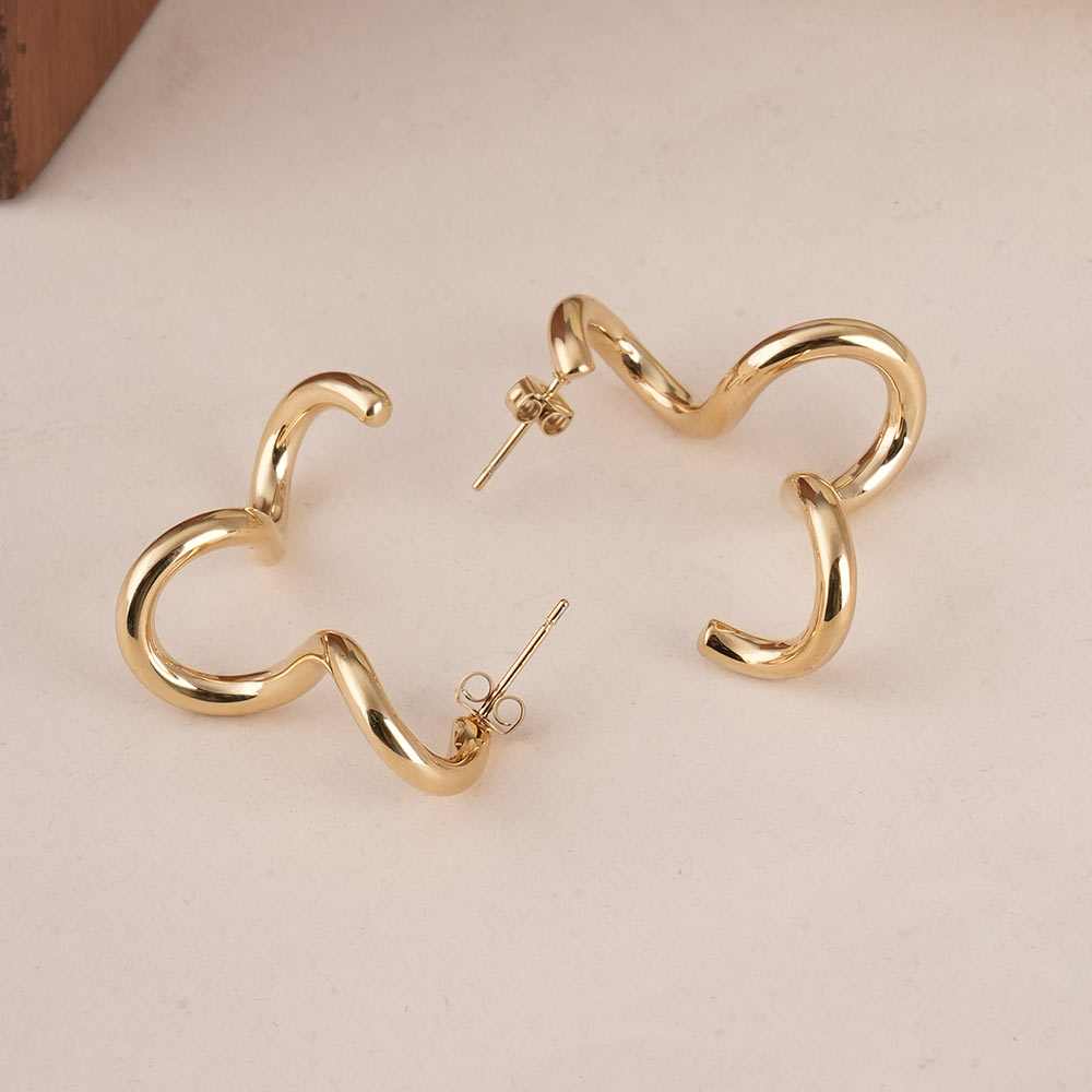 Make a contemporary style statement with these Abstract Gold earrings. Crafted from durable stainless steel with radiant 18k gold plating, their unique, artistic design adds a modern, eye-catching accent to any outfit. Perfect for everyday wear, office ensembles, or evening occasions, these earrings blend bold artistry with elegant sophistication.