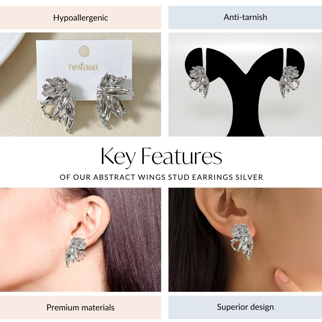A physical display of elegance and the metaphysical essence of freedom, these earrings embody the grace of swan wings. Inspired by the majestic wings of a swan, they represent beauty, strength, and the limitless potential to soar. Crafted in silver, the delicate feathered design mirrors the fluid motion and refined power of these creatures in flight. Perfect for adding a touch of timeless elegance and empowerment to your style.