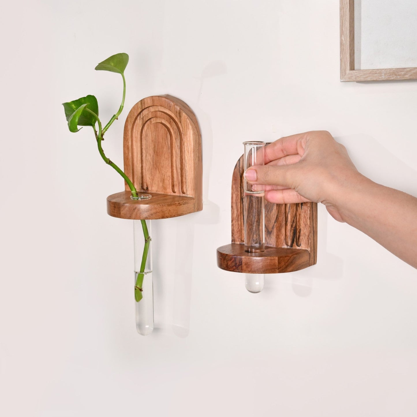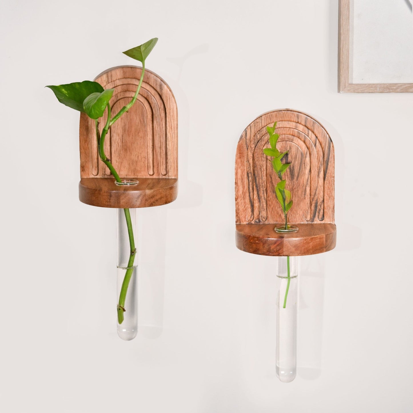 Acacia Wall Mounted Test Tube Planter Set Of 2