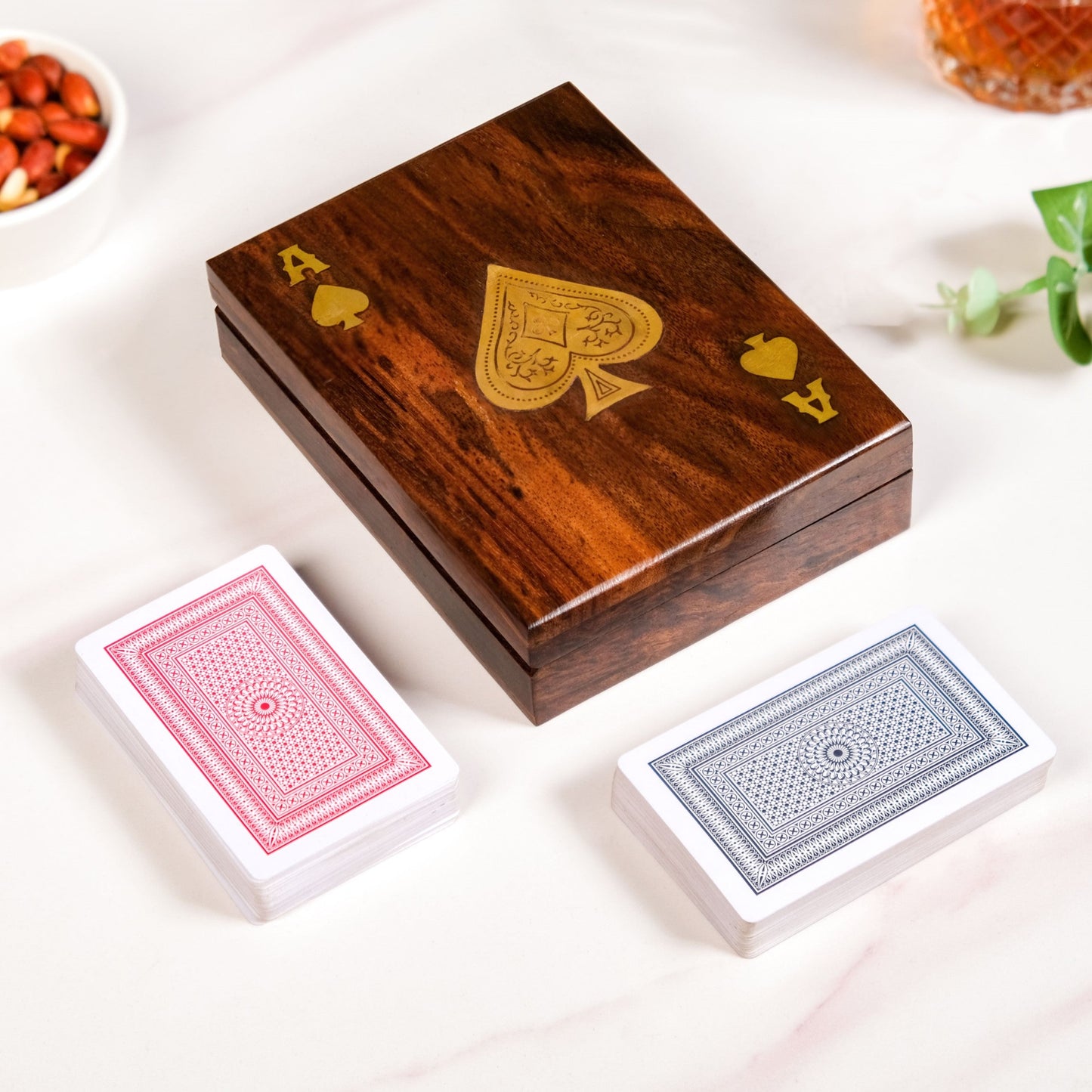 Benefits: This card box provides more than just a place to keep your deck of cards. The durable Sheesham wood offers a sturdy and stylish storage solution, protecting your playing cards from damage and dust. With a deck of cards included, it's a complete set ready for use. Its elegant design makes it a beautiful decorative piece that can enhance your home decor while also serving as a perfect and stylish centerpiece for game night.