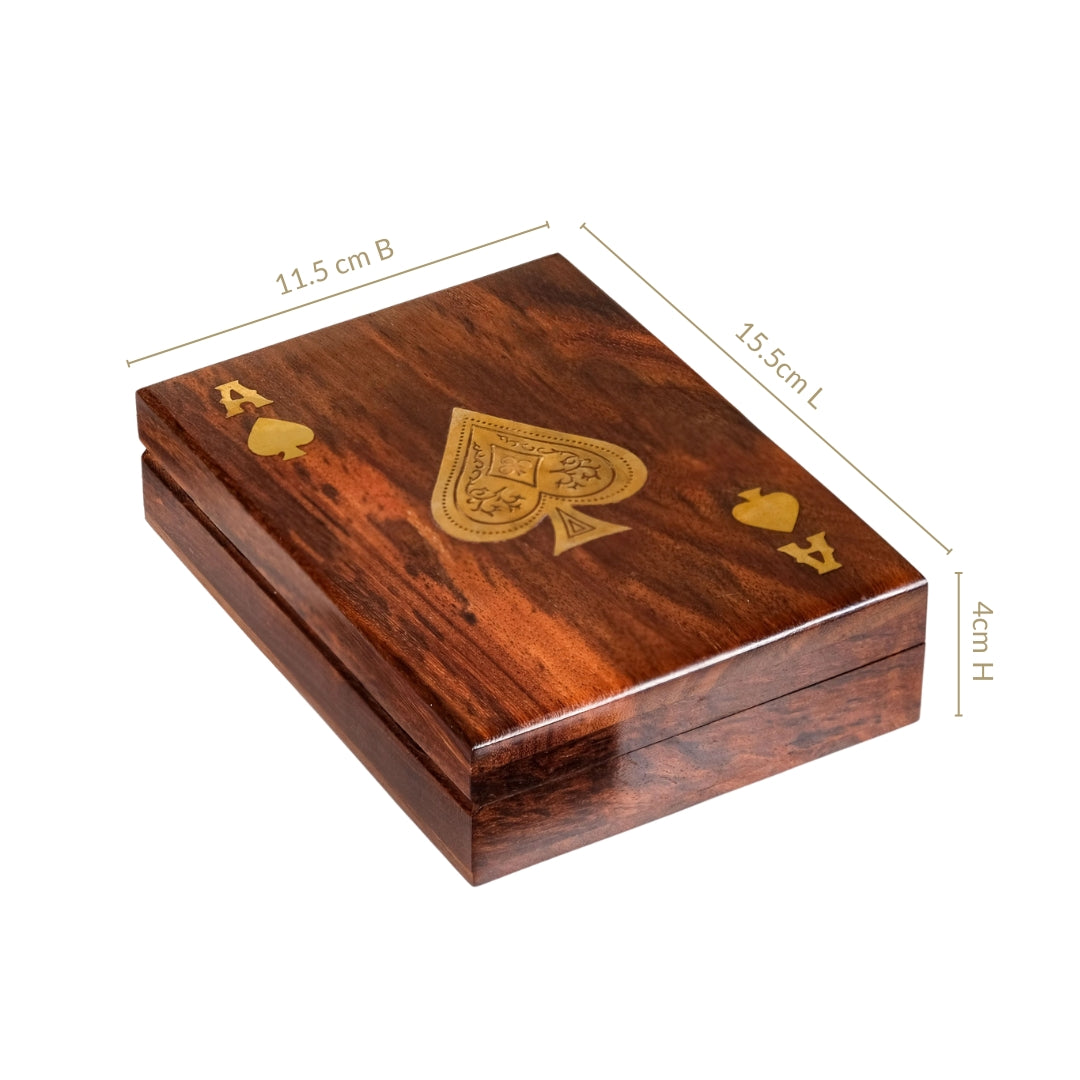 Crafted for those who demand both style and substance, this Sheesham wood box is a true masterpiece. The striking brass Ace of Spades inlay commands attention, transforming a simple card holder into a work of art for your home.