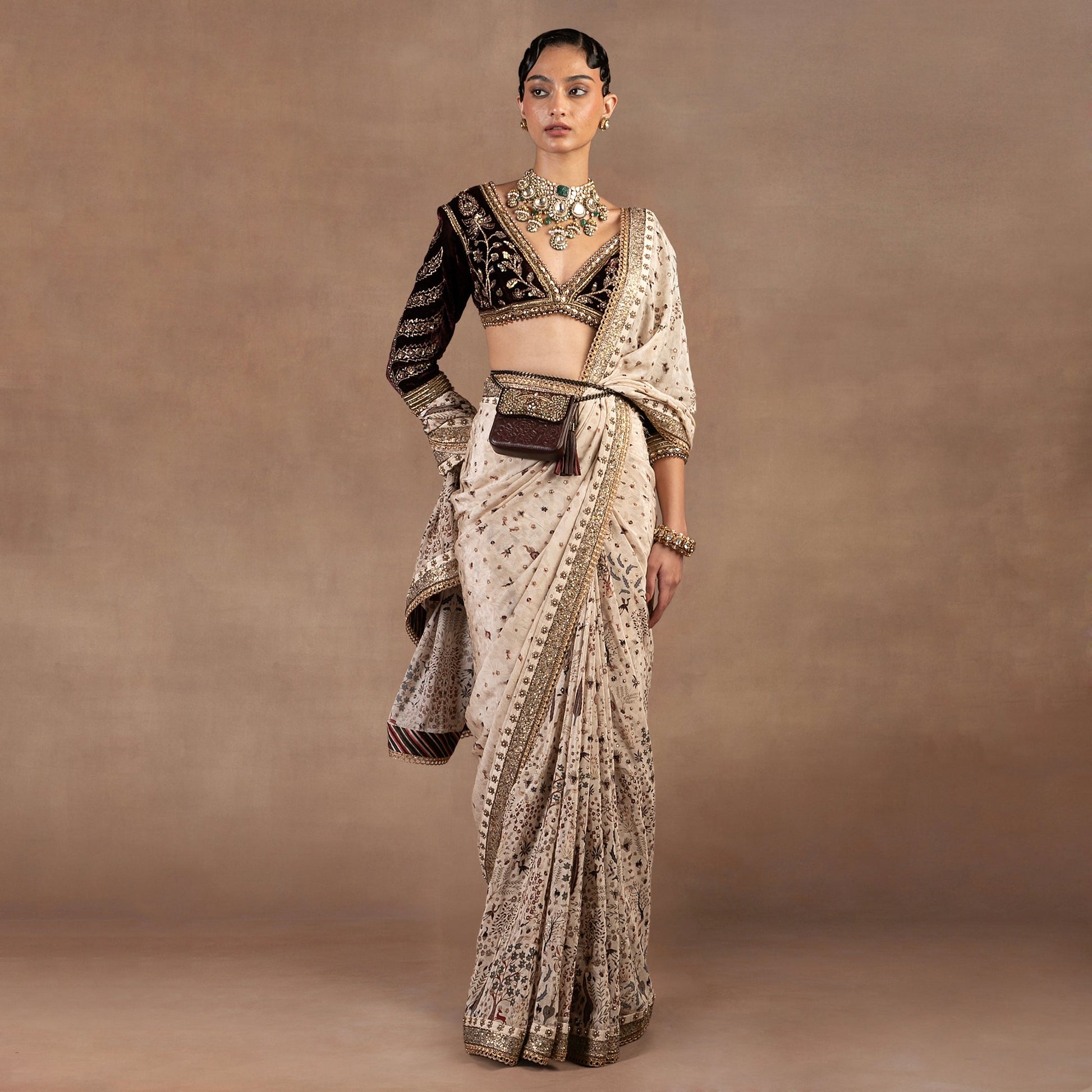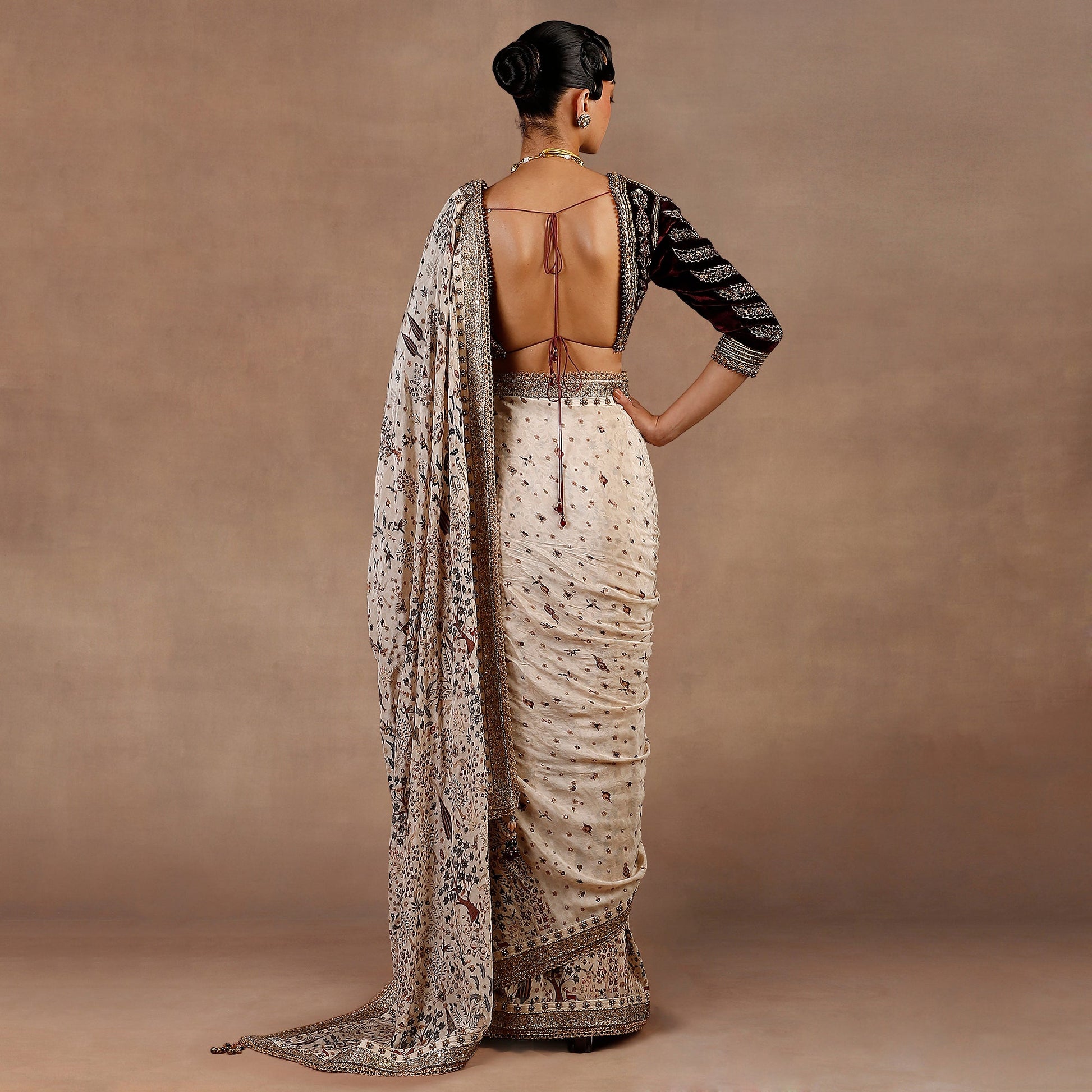 Almond Ivory - Burgundy Saree Set | EAST