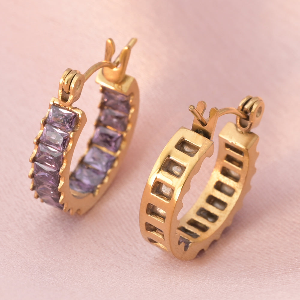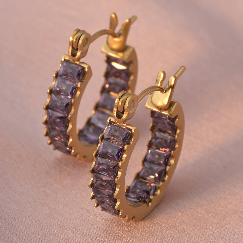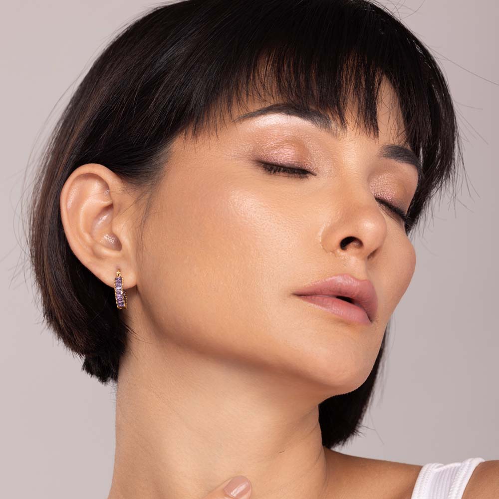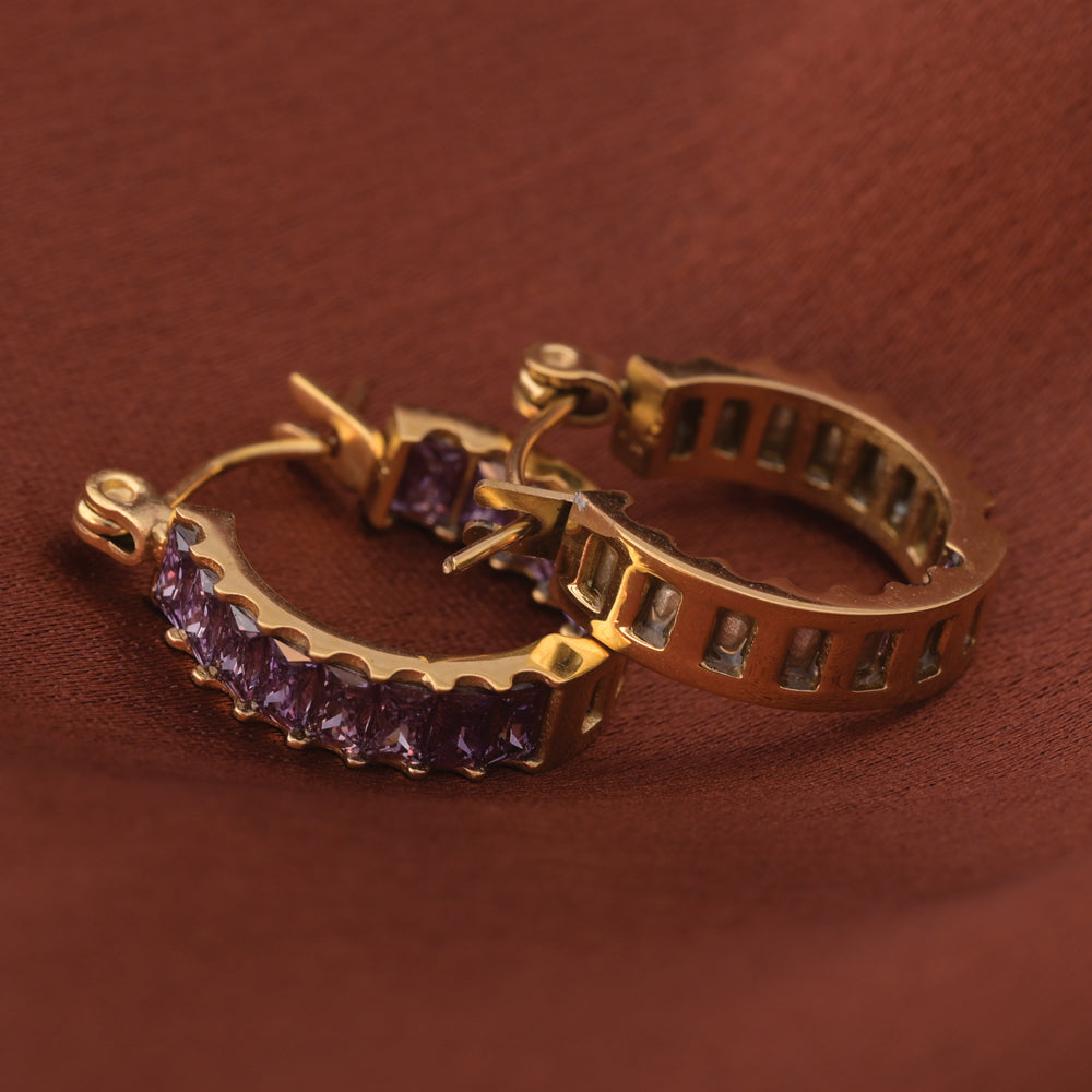 Discover the allure of Amethyst Hoop Earrings, designed to empower and enhance your style. These earrings gold for women transcend conventional accessories, embodying both grace and the unique charm of amethyst. The gold-plated finish ensures enduring radiance while guaranteeing remarkable quality. Owning these earrings is about embracing an extension of your inner elegance and confidence, adding a dash of sophistication to every step you take.