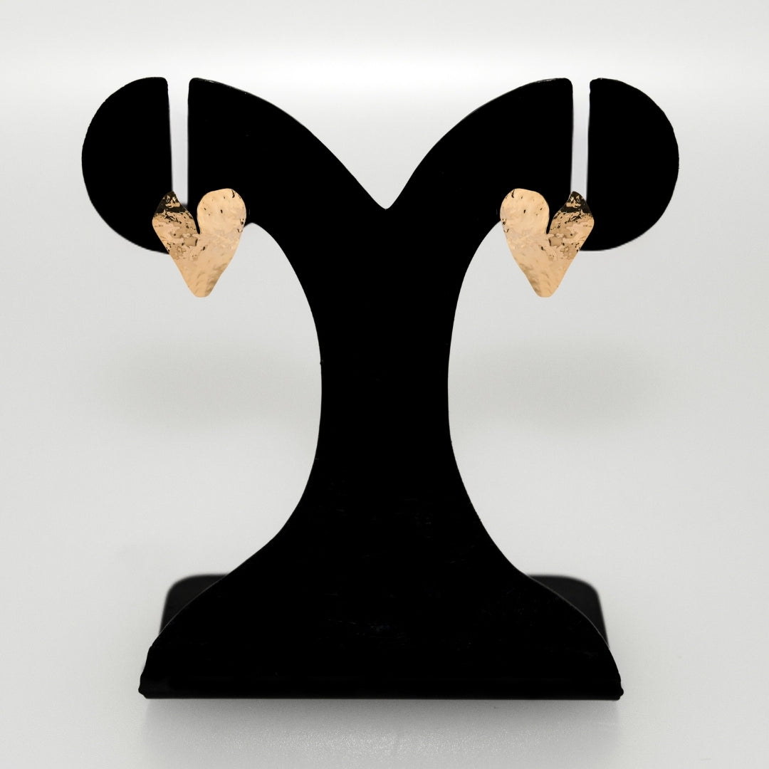 Sensual, evocative, and organic, these earrings are a timeless symbol of love, reimagined with a modern twist. Inspired by the raw beauty of emotions, these earrings feature an abstract heart shape that feels both delicate and bold. The rich gold hue enhances the hammered texture, adding depth and dimension to every curve. A perfect balance of elegance and artistry, they’re a statement of love in its most beautiful, imperfect form.