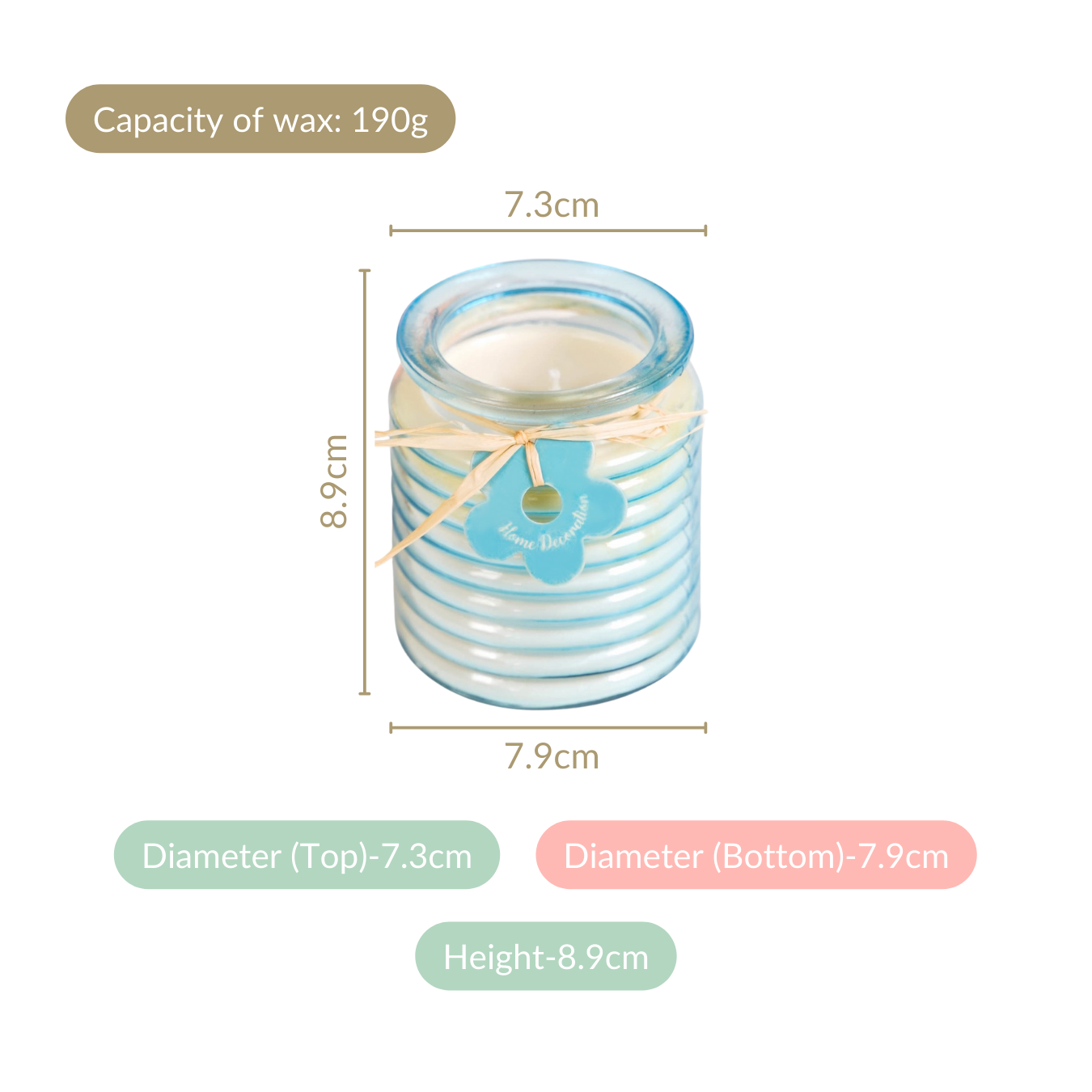Design: Meticulously crafted from high-quality soda lime glass, these scented candles beautifully combine form with function. Featuring a captivating horizontal ribbed texture in four different shades, these fragrant candles bring a playful yet sophisticated touch to any room.