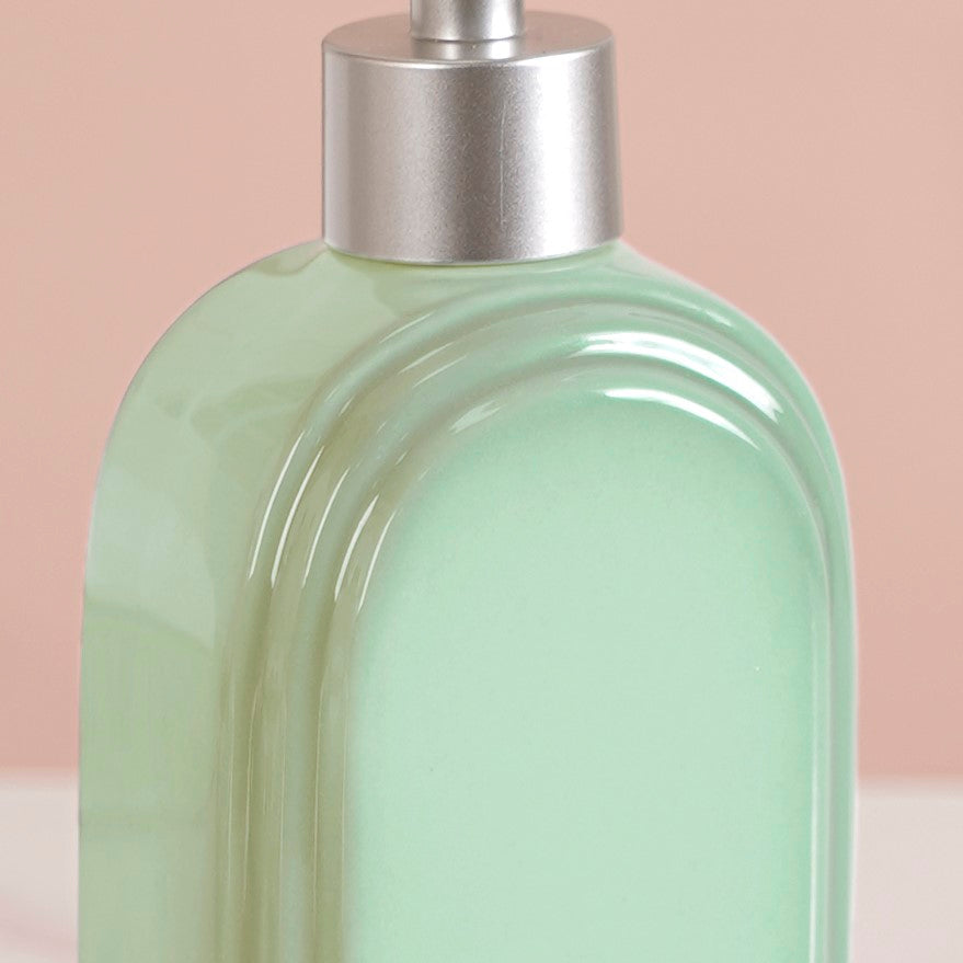 Introducing our Jade Green Art Deco bathroom accessories set, the epitome of bathroom bliss that will transform your daily routine into a luxurious escape with this stunning ensemble that combines style, sustainability, and craftsmanship in perfect harmony. Made from high-quality, non-porous ceramic, this bathroom set exudes durability in every detail. Furthermore, as ceramic is a recyclable material, this bath set solidifies our commitment to creating and offering homes a sustainable, eco-conscious alternative. The trio includes a refillable soap dispenser with a pumpable nozzle to dispense the contents in a hygienic and controlled manner, a tumbler to organise and store all your bathroom essentials, and a tray for a stylish and organised look. But the ultra-chic and luxurious art deco-inspired design makes this set a true must-have in every bathroom. The luscious green hue evokes the tranquillity of nature, combined with sleek lines and a glossy finish for that modern flair. Trust us. You don't want to miss the chance to get your hands on this beaut of a bath set.