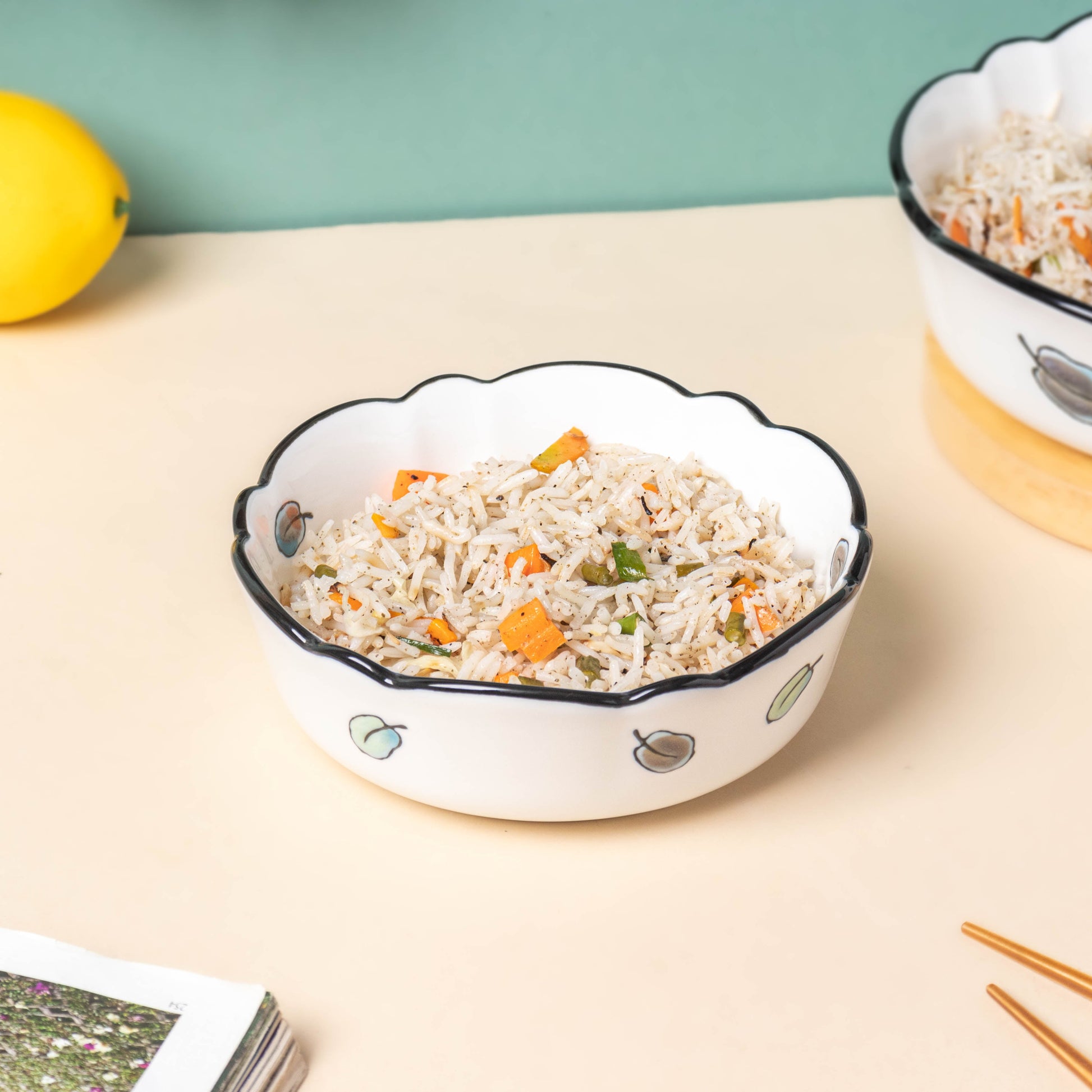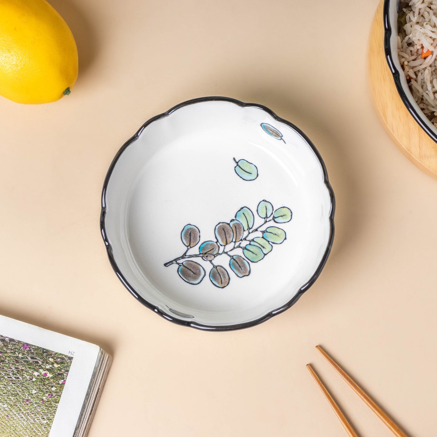 The ceramic snack bowl with a summertime aspen leaf design is a new addition to the collection and is perfect for dry fruits or chips. The ceramic snack bowl in the classic layout can be used to serve cashews, nuts, badam, almonds, raisins, and other snacks. Freshly cut fruits may be presented in the ceramic bowl, which makes it appropriate for a side bowl during a breakfast of waffles or pancakes. The snack bowl may also be used as a breakfast cereal bowl for scrambled eggs or for finger foods.