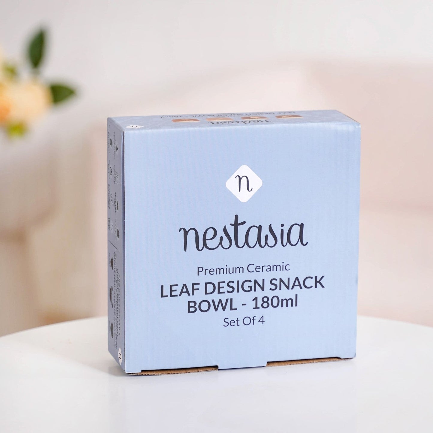 Design: The set boasts an evocative palette of deep red, rich maroon, sun-kissed terracotta orange, and soft pink, reminiscent of a bountiful harvest. What truly distinguishes these bowls is the intricate silkscreen leaf print gracing each one. Every single bowl features a distinct leaf design from the broad expanse of a maple leaf to the delicate fronds of a fern. Within the smooth interior of each bowl, subtle brown freckles dot the surface. The bowls are beautifully framed by a consistent brown coloured band along their rim and also at the base. The entire set is perfectly suited for serving vibrant dry fruits, crunchy trail mixes, a medley of olives, or even colourful candies.