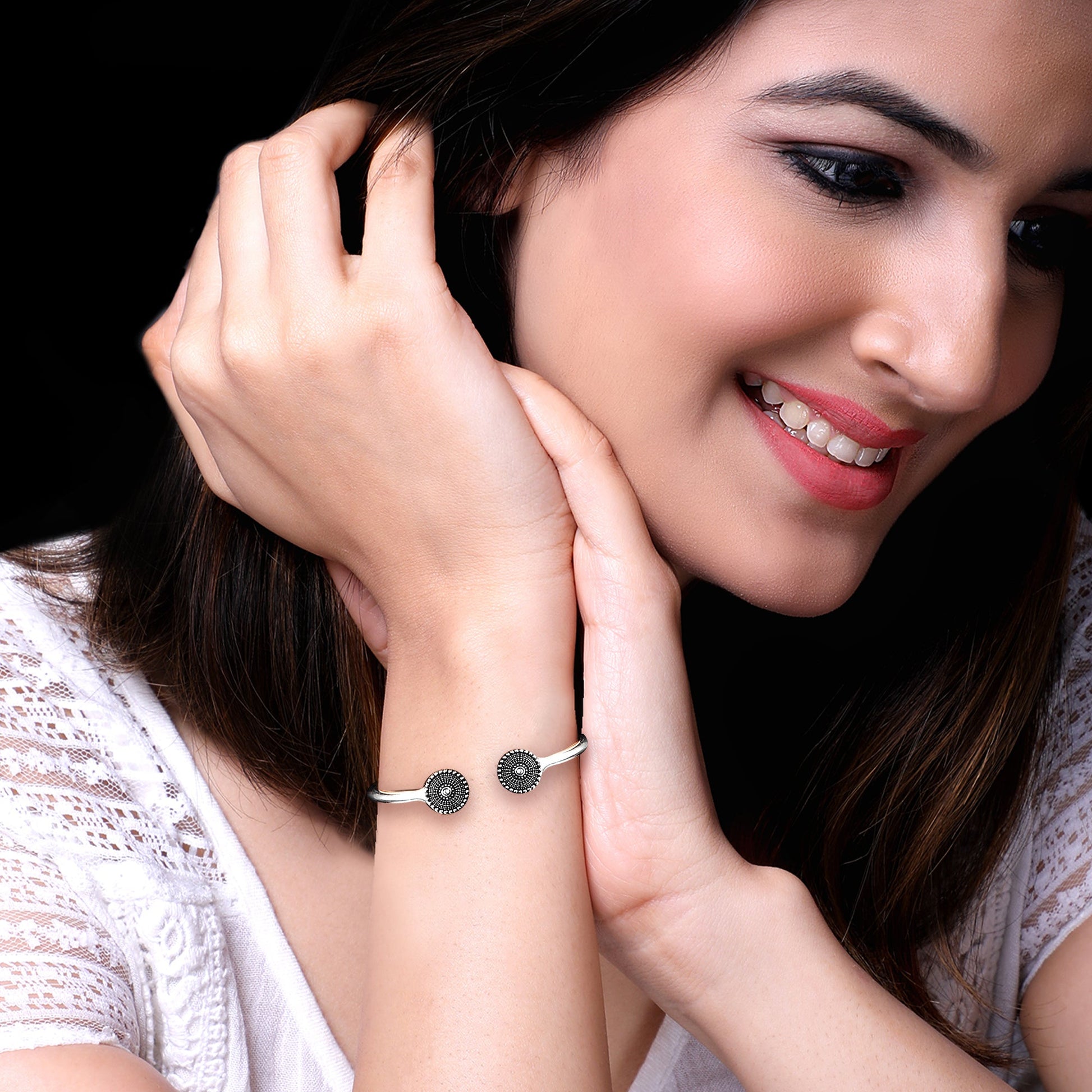 DIVA, you have so many decisions to make each day. All we want to do is make your life simpler. This Oxidised Silver Minimal Bracelet is inspired by this desire of ours. Minimal design, minimal fuss, maximum charm. A gorgeous partner for a beautiful lady.