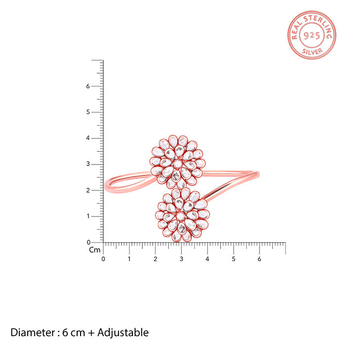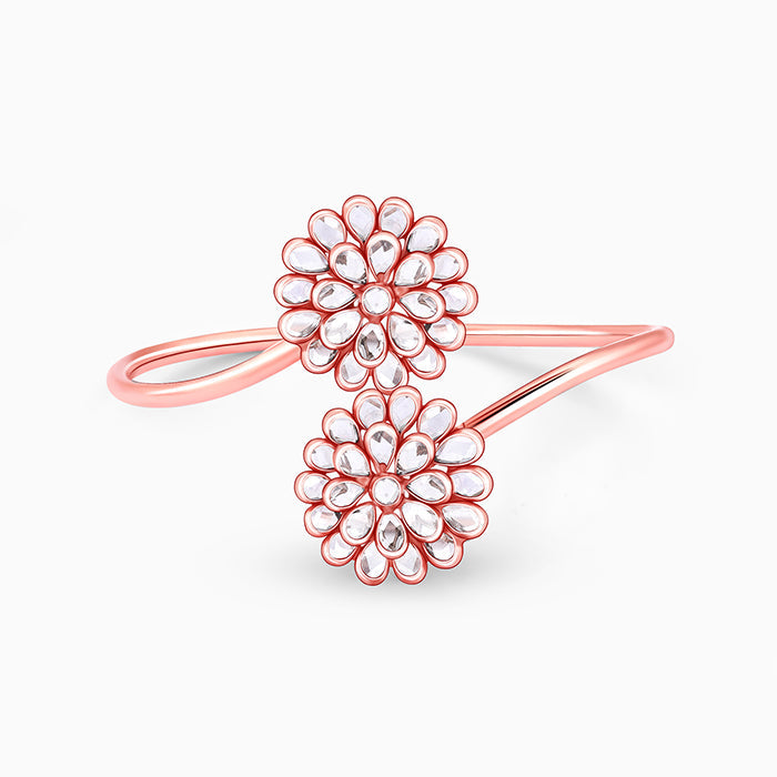 This rose gold open-design bracelet has flower motifs at both edges with rose-cut glass stones. Presenting Trendy Freak's chic #VivaahDaSwag Collection for an unforgettable wedding.