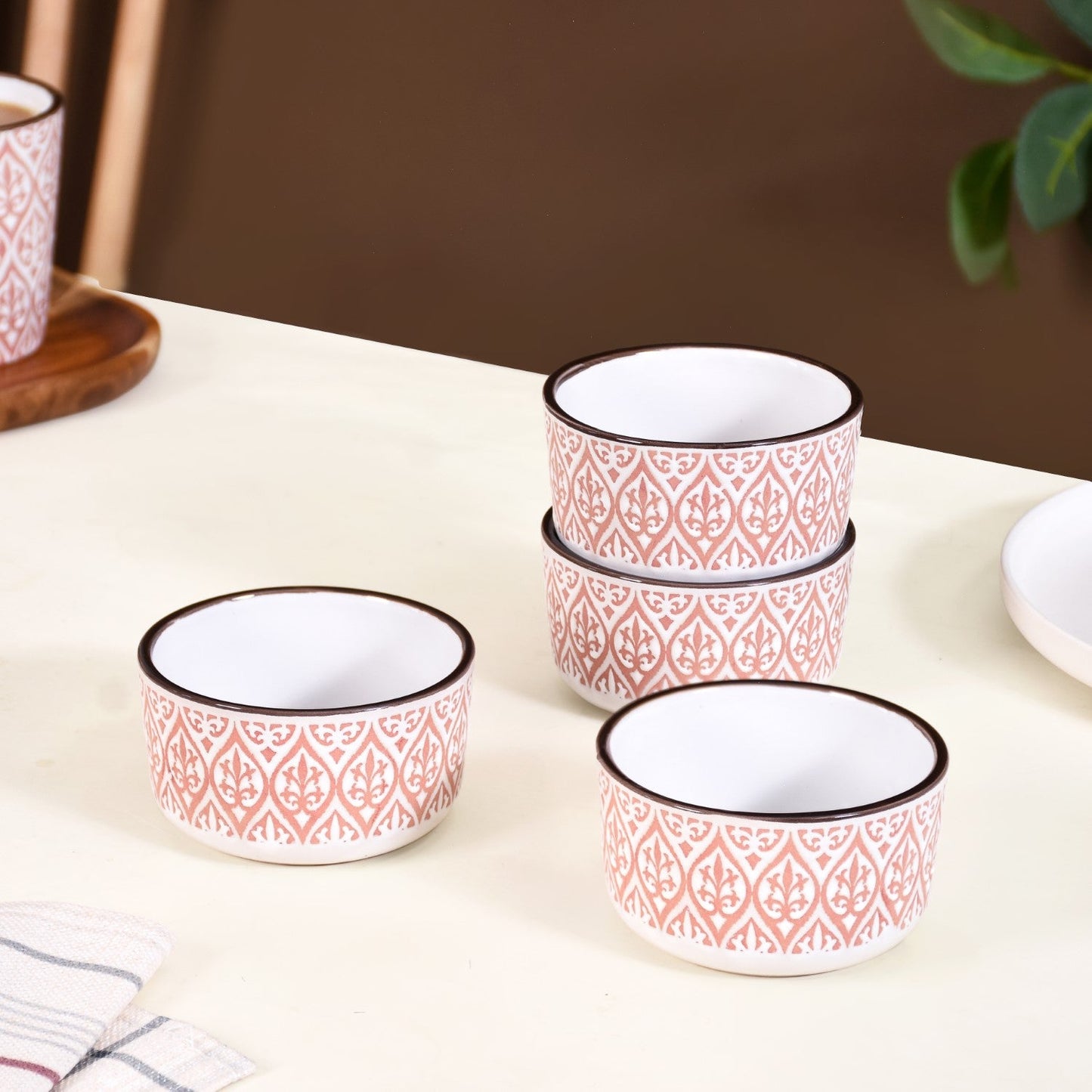 Utility: If you're wondering how to use these ceramic dessert bowls, the sky is the limit. Perfect as a snack bowl for your favourite small snacks like nuts, candies, or olives, you can also use them as dessert bowls for a little sweet treat or serving dips, condiments, and chutneys. Furthermore, their size makes them perfect for being used as Katoris to serve individual portions of dal, curries, and sabzi during dinner parties.