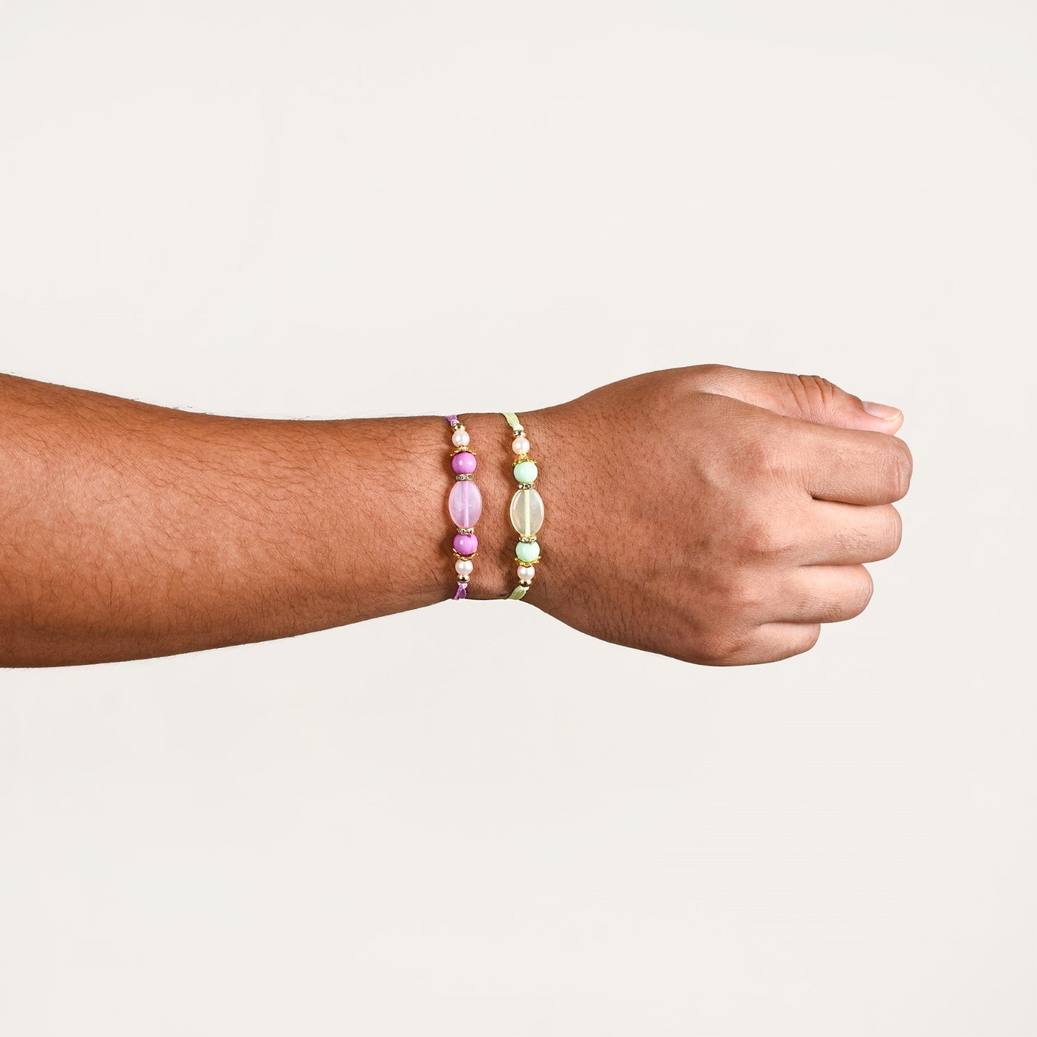 Surprise your brother with our stunning Rakhi gift hamper, specially curated for this festive occasion. This set includes 2 elegant Rakhi bands - one with mint green beads and stones on green threads, and the other with pink beads and stones on pink threads, both featuring small golden detailings. Complete the tradition with a roli-chawal bottle set and a pack of mixed dry fruits. Presented in a charming gift box and accompanied by a heartfelt wish card, this Rakhi hamper is the perfect way to express your love and best wishes to your brother.