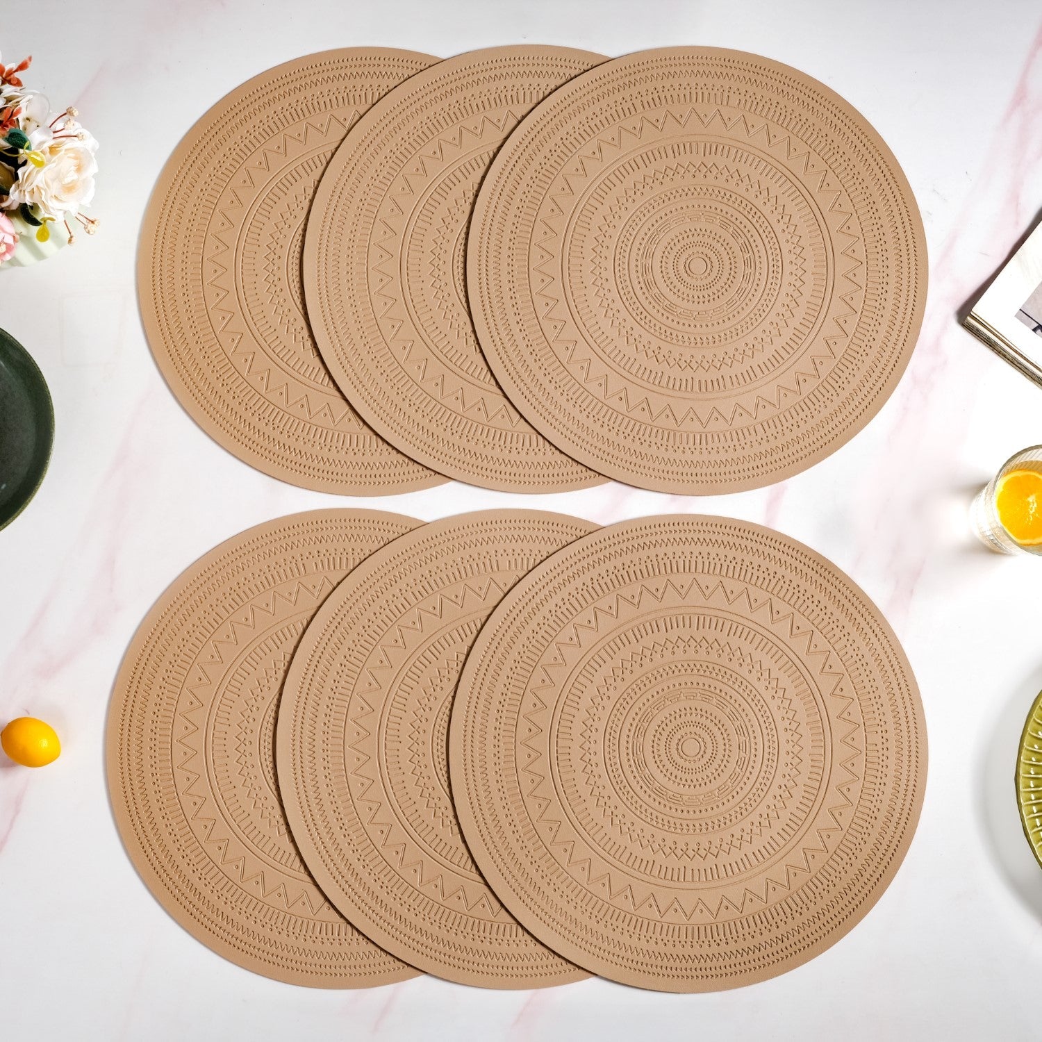 Stylish and practical in equal measure, this table mat set offers six round table mat pieces that combine form and function. Perfect for everyday meals or special occasions, these dining table mats bring a touch of contemporary charm to your dining experience.