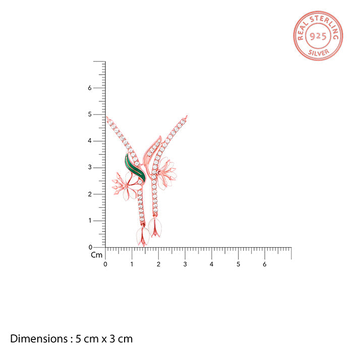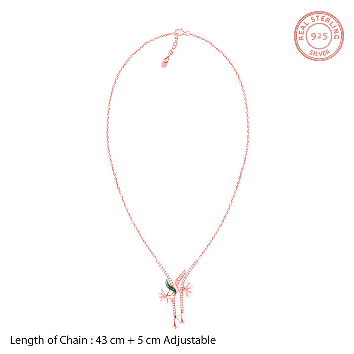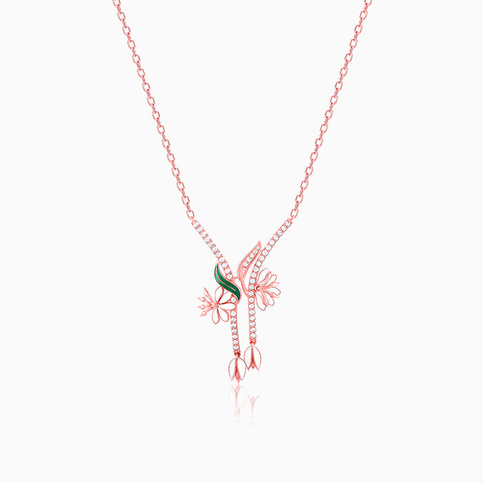 This rose gold necklace has a dual musli motif coated with white enamel and studded with zircons. Celebrate the beauty of nature's rarest blooms with Trendy Freak and Bhumi Pednekar - The Bhumi Collection.