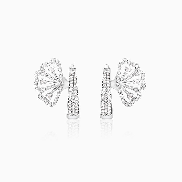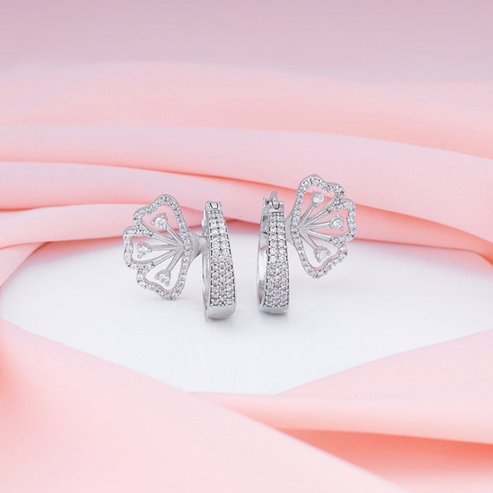 These silver earrings have a gorgeous eyebright motif studded with zircons. Celebrate the beauty of nature's rarest blooms with Trendy Freak and Bhumi Pednekar's new jewellery line - The Bhumi Collection.