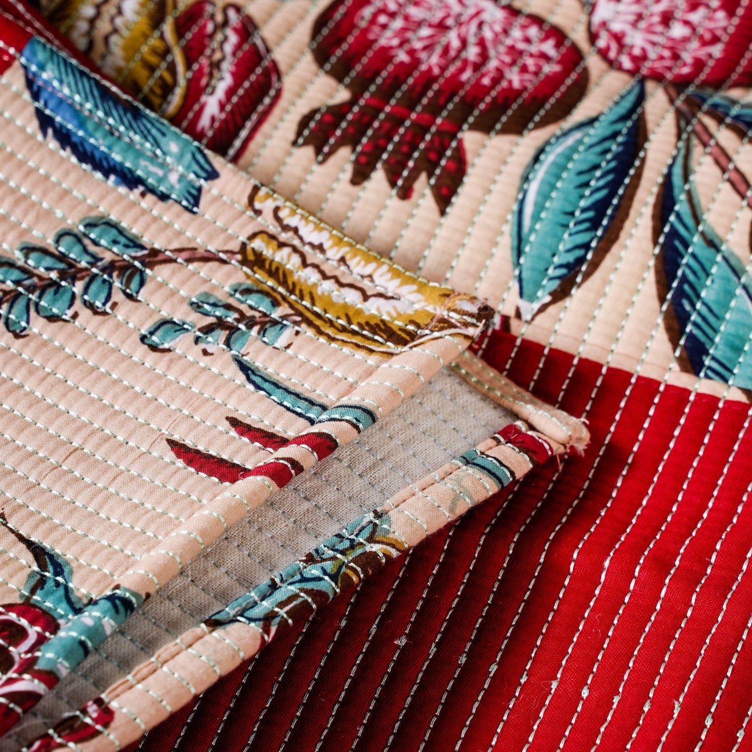 Boasting a charming blend of comfort and artistry, this quilted cotton bedcover transforms your space with its elegant design. Crafted for year-round cosiness, it offers a breathable and lightweight feel for restful nights.