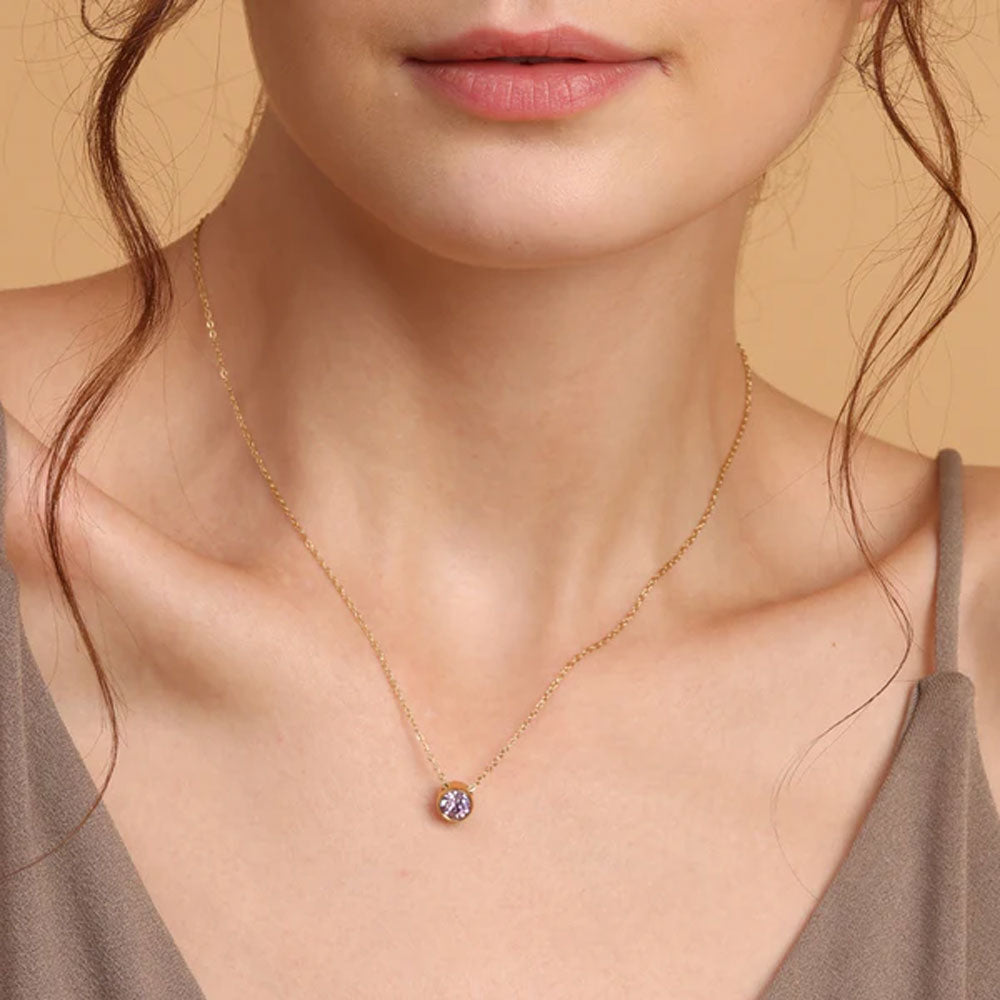 Celebrate individuality with the Dainty Birthstone Necklace, crafted in 18K gold-plated stainless steel and adorned with a sparkling birthstone accent. Elegant and personal, this necklace captures timeless charm while adding a meaningful touch to your jewellery collection. Perfect as a gift or a self-love piece, it layers beautifully with other chains or shines on its own, bringing subtle sparkle and a unique story to every outfit.