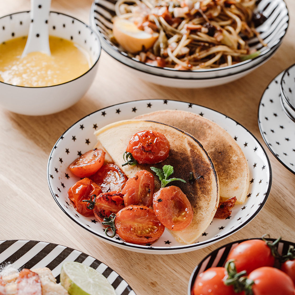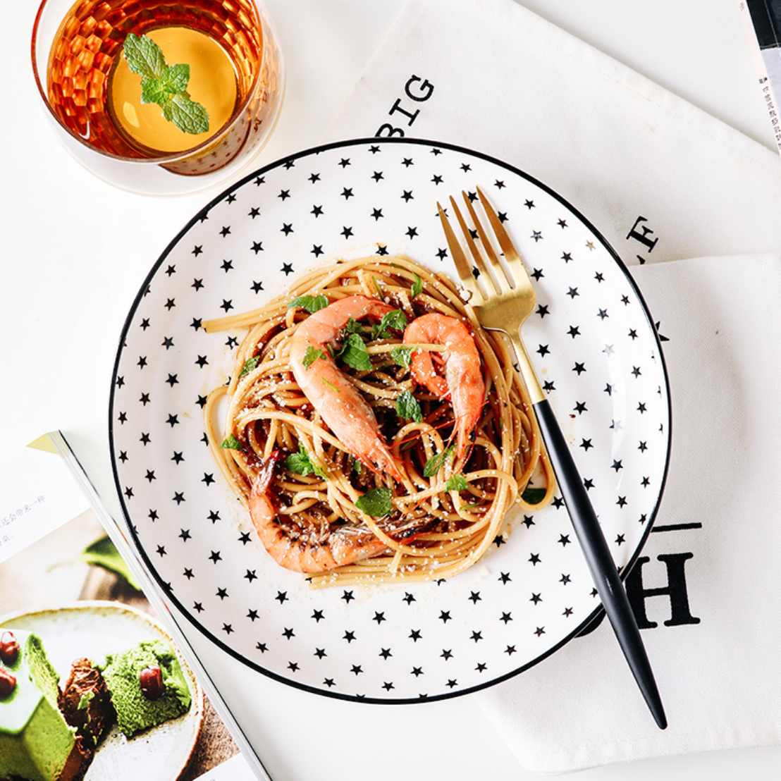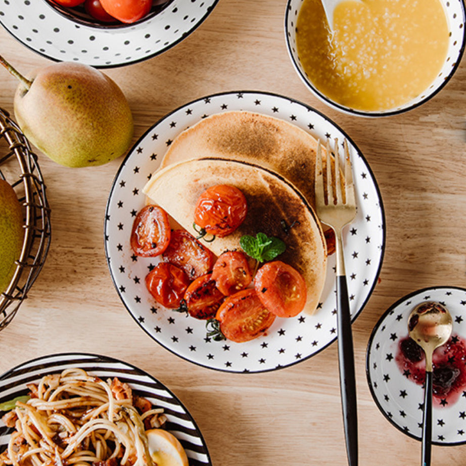 Nestip: The black and white deep plates can be paired with the black and white plates to complete the set
