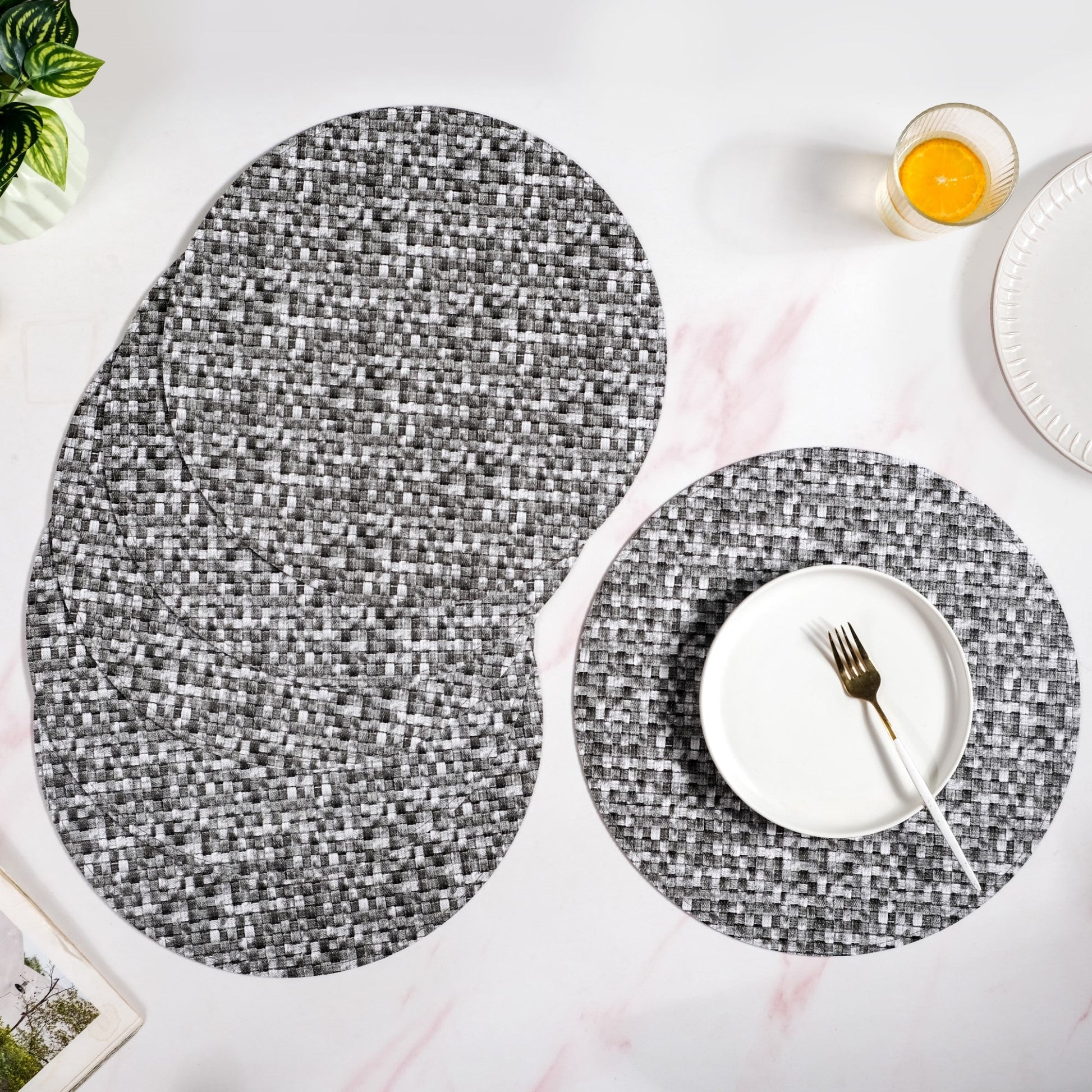 Design: Boldly chic, these table mats redefine modern sophistication with their striking design. The sleek embossed basket weave, rendered in a classic monochromatic colour scheme, adds a contemporary flair to any place setting. Ergonomically designed, the mats feature an anti-skid rubber base, ensuring they securely stay in place.
