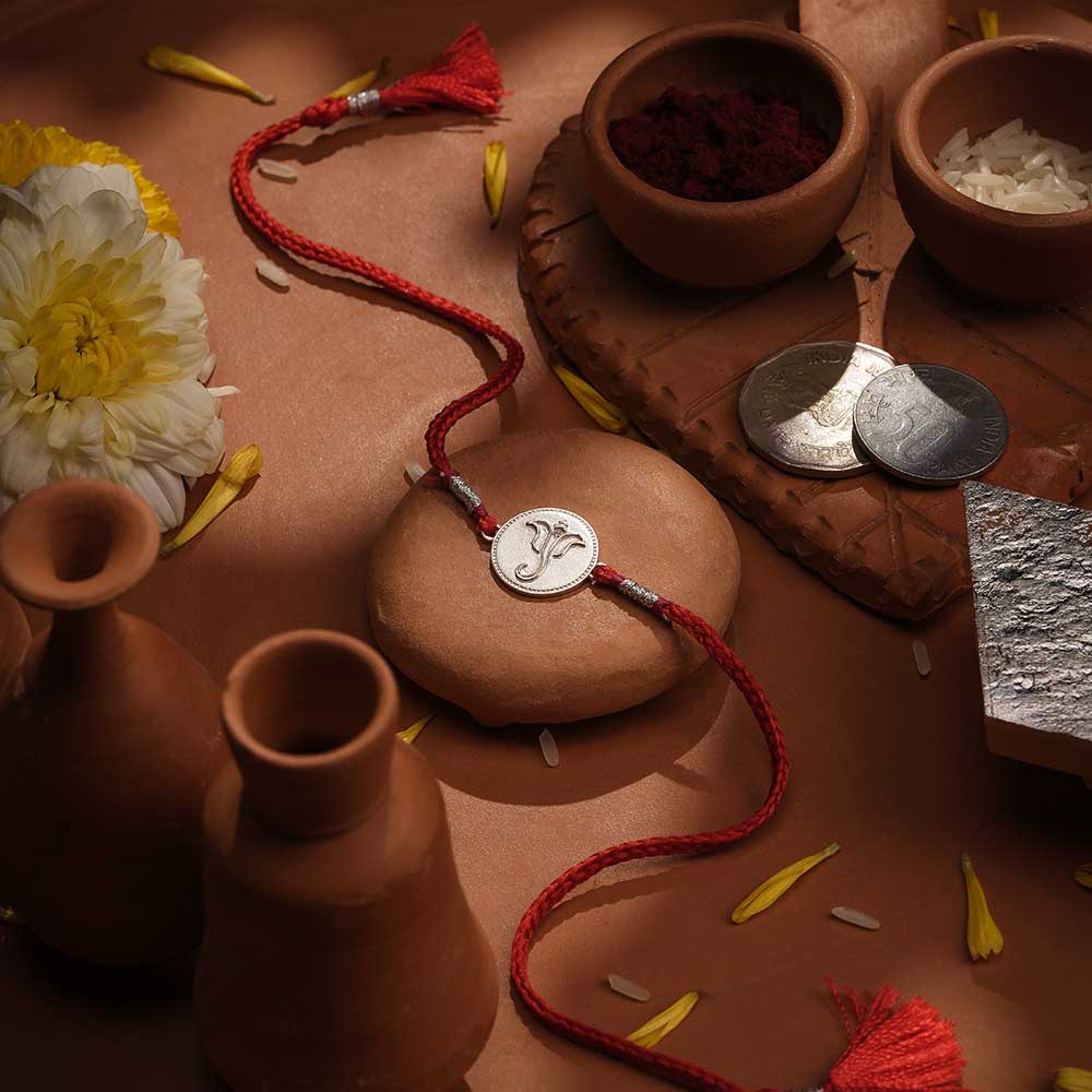 A divine symbol of love and blessings, this Rakhi features a sparkling 0.01 ct lab-grown diamond set in pure 999 silver coin. Its elegant design blends tradition with precious charm, perfect for a timeless Raksha Bandhan celebration.