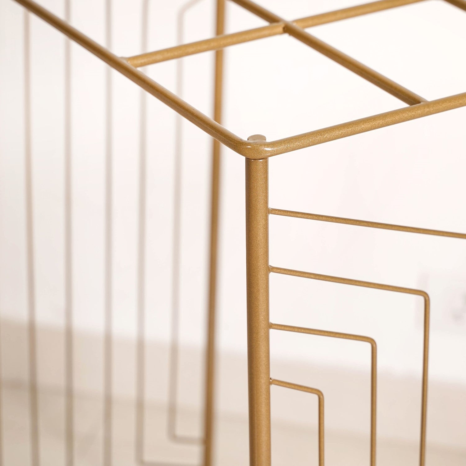 Design: Made from rust-resistant iron, the sturdy box frame structure of the backdrop offers stability, complemented by a luxurious gold powder-coated finish that exudes timeless beauty. Enhance the ambience of your sacred space effortlessly with the stunning design of this backdrop metal frame.