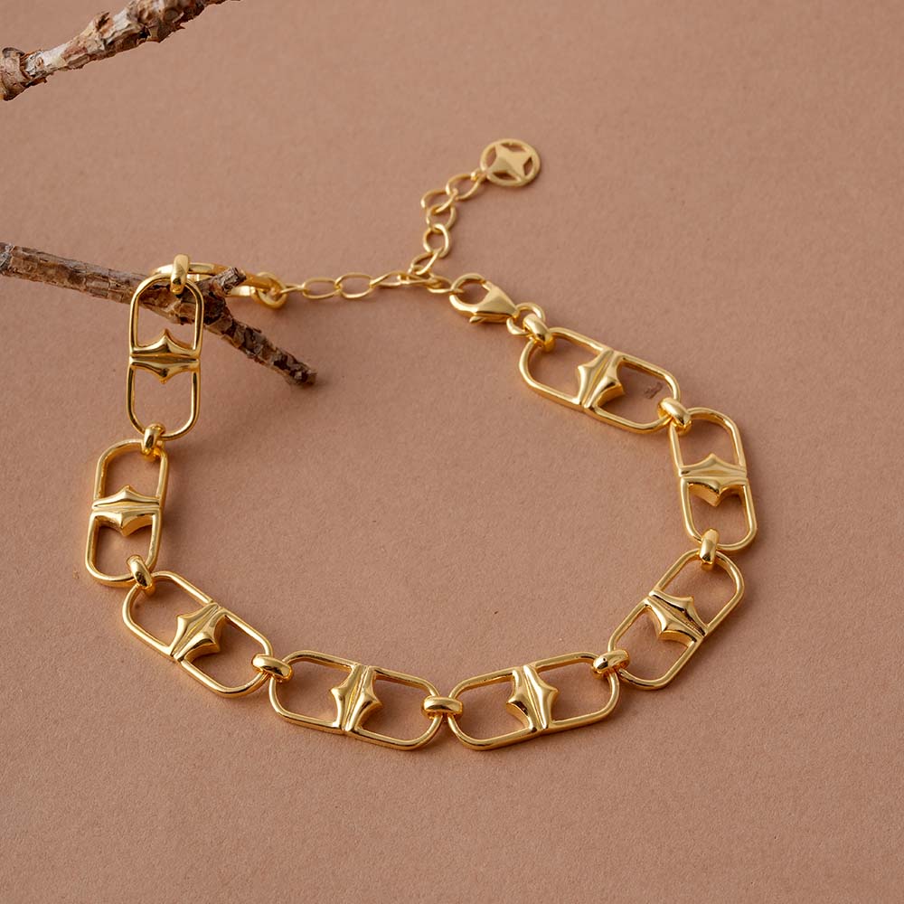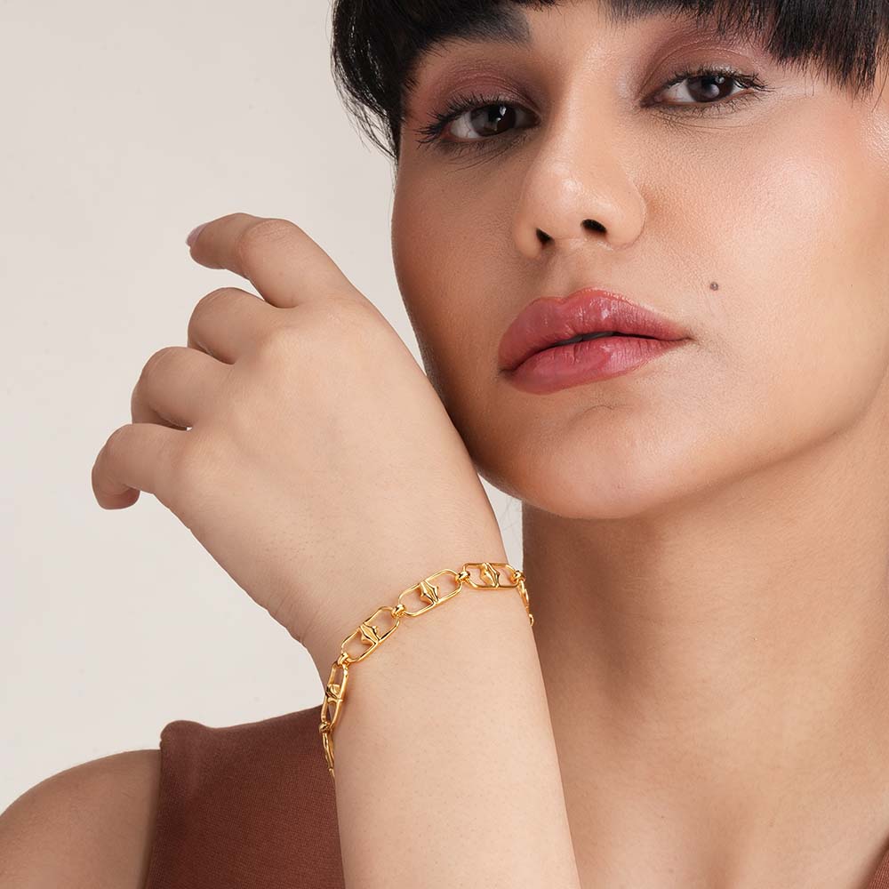 The Buckle Link Signature Bracelet redefines classic sophistication with a modern edge. Crafted in 925 sterling silver and finished with radiant gold vermeil plating, it features an elegant interlocking buckle motif that symbolizes strength and unity. Designed for everyday wear, this bracelet blends timeless craftsmanship with contemporary style - a versatile statement piece for any jewellery lover.