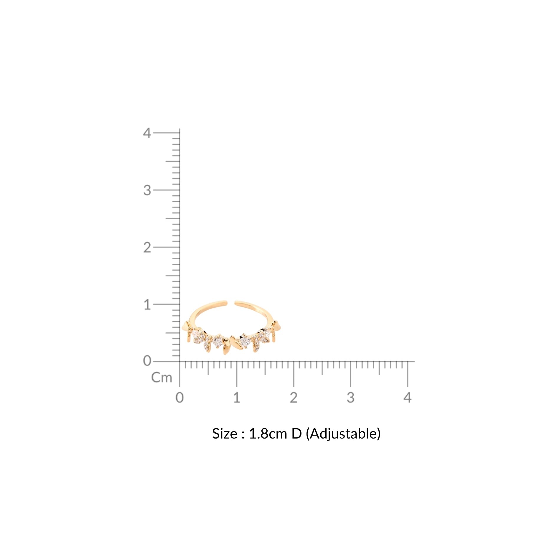 Add a touch of charm to your jewellery collection with this gold ring, featuring delicate, stone-studded butterflies. This dainty ring is adjustable, giving you a comfy fit for any occasion. The butterfly design adds a playful, elegant vibe, while its versatile look makes it easy to style with both casual and dressy outfits. Whether you're treating yourself or searching for a thoughtful gift, this gold ring is a lovely choice.