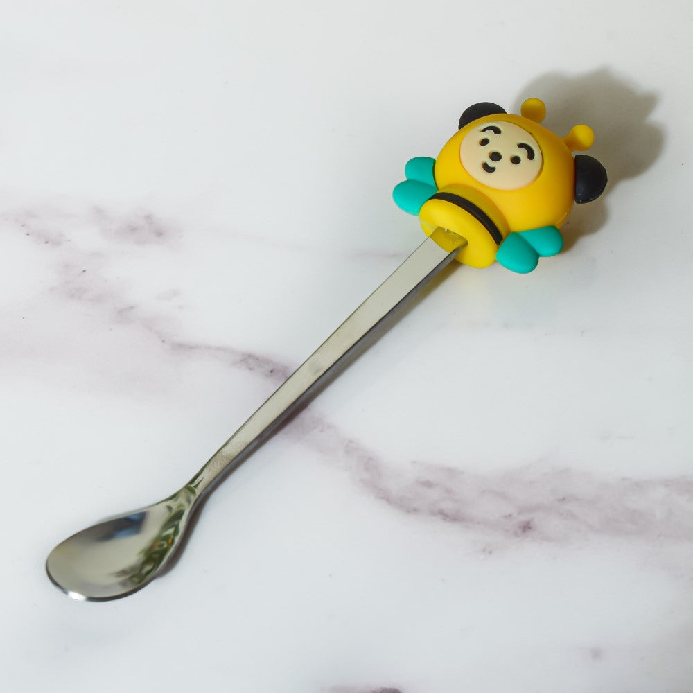 Two little bees smile sweetly and keep buzzing on the vibrant yellow mug that is paired with a lid with a groove to hold the spoon in place. The spoon is topped with a cute bee to add to the quirkiness. The mug has crafted of sturdy ceramic and makes for a great gifting option.