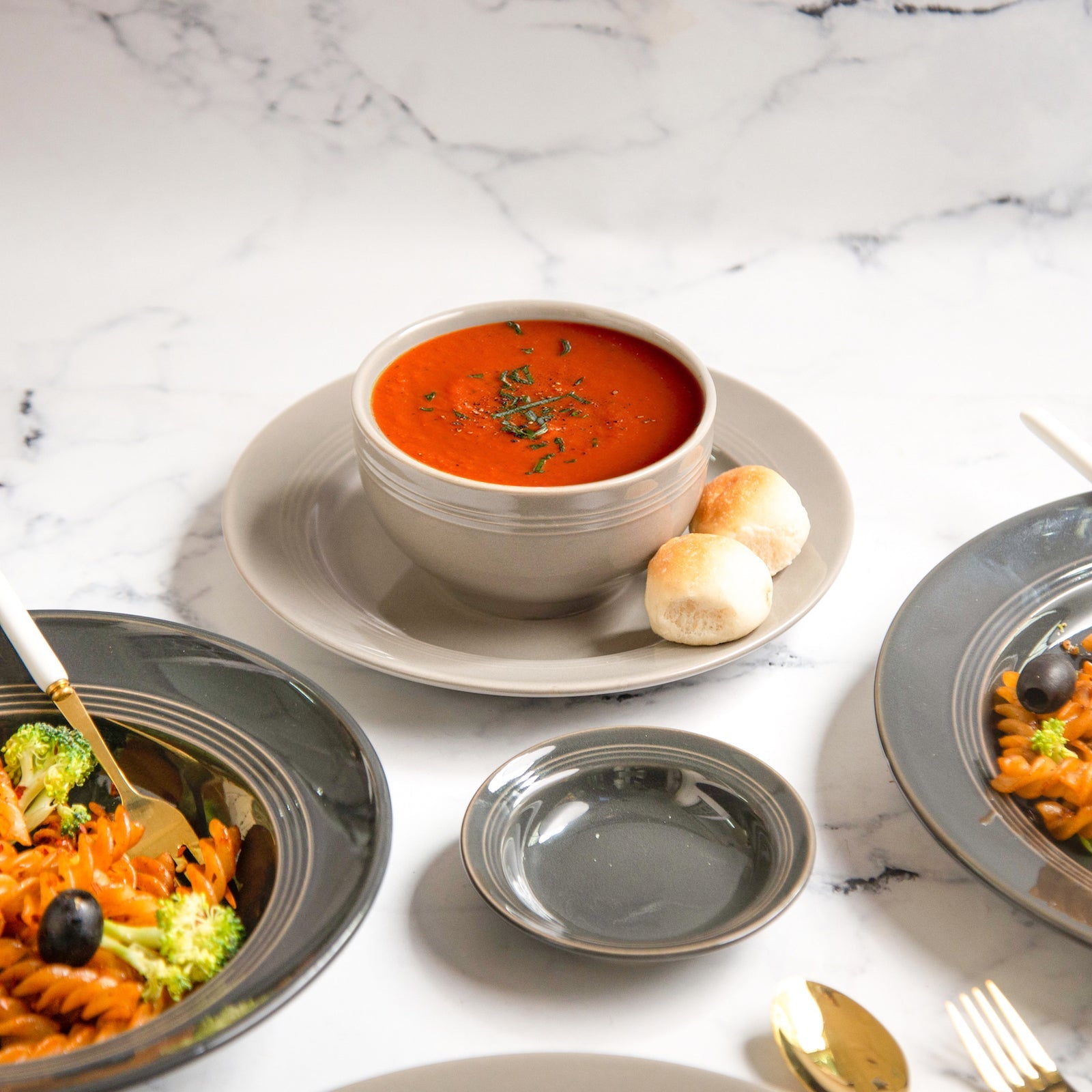 Ceramic clay bowl in grey color that can be used as a soup bowl, curry bowl or rice bowl for individual servings. The side bowl from the ceramic clay collection has a look of potters clay tableware that can be added to the dinner set collection. The side bowl looks exquisite and is microwave safe. The colors of the clay collection may appear to be different under different lights.