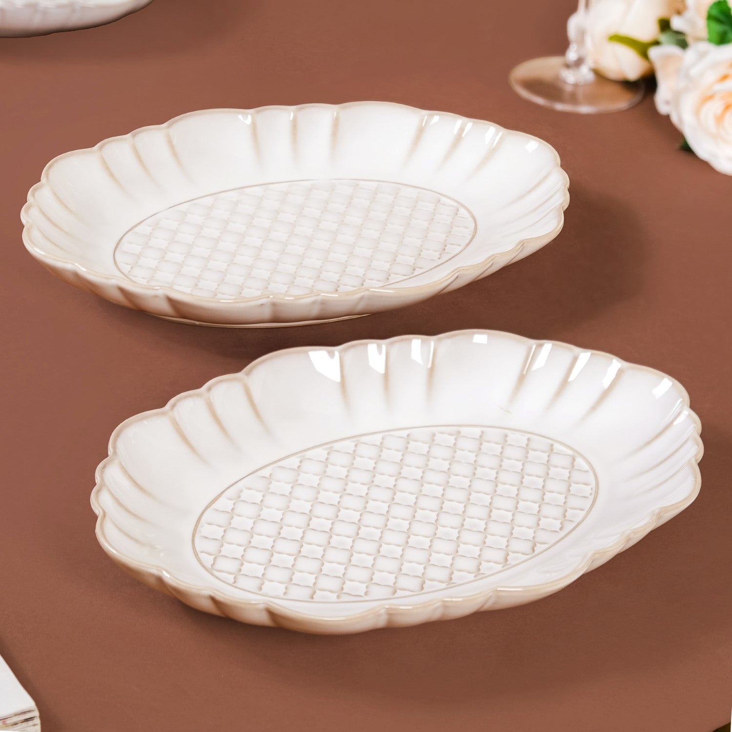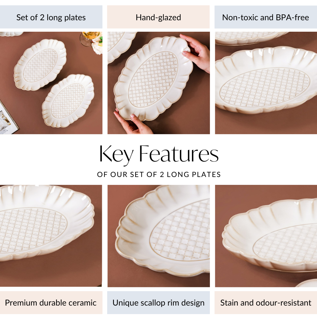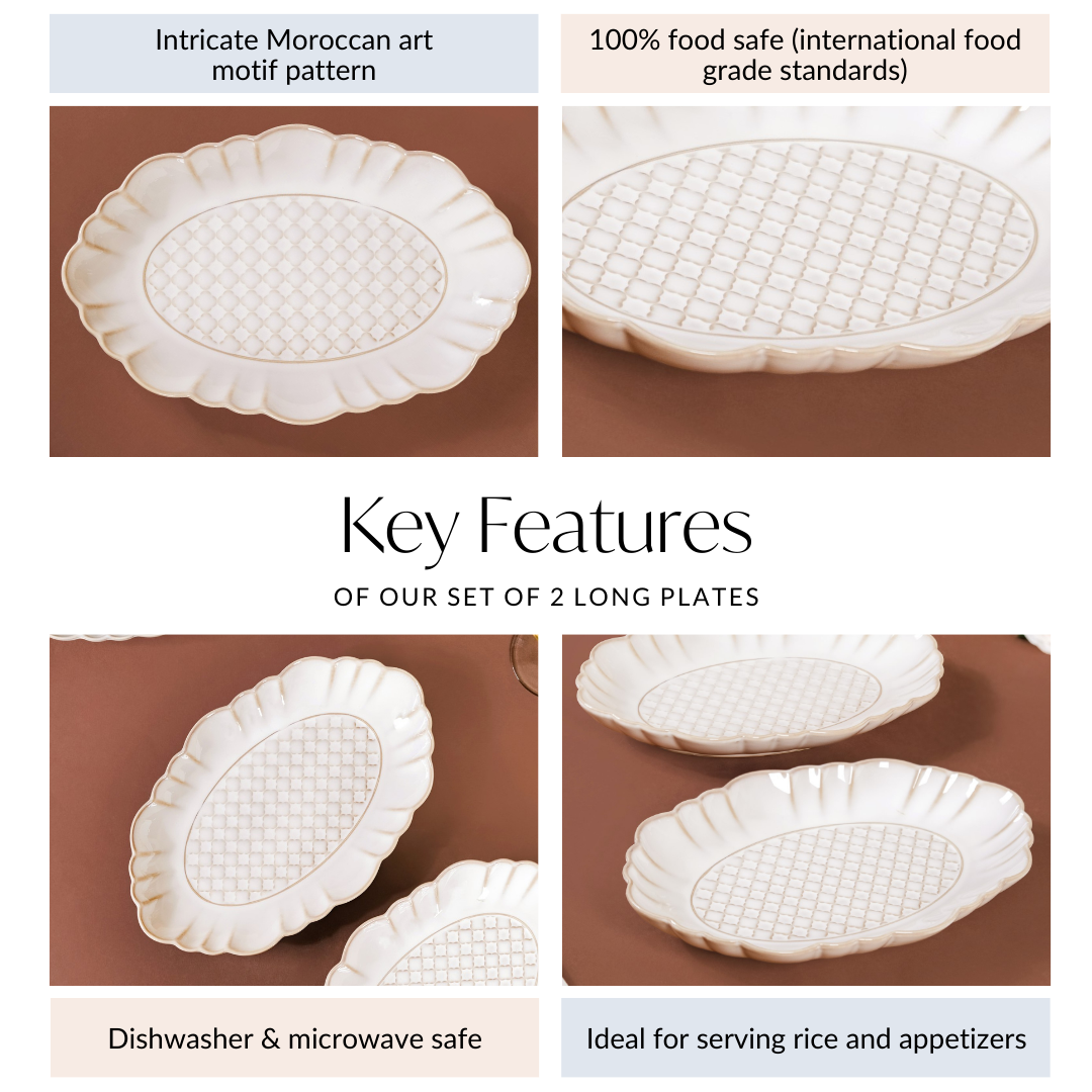Chic Moroccan Long Plate Set Of 2 Ivory 12 Inch