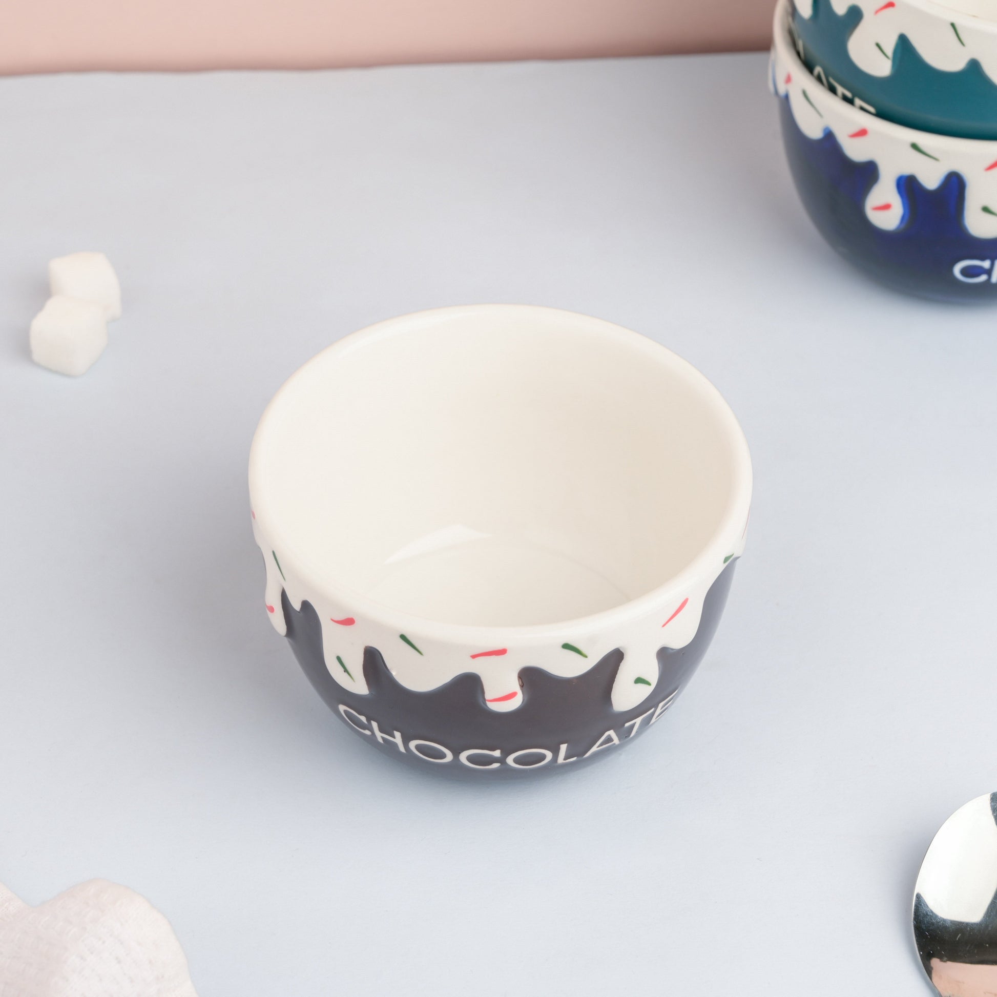 The brown chocolate bowl comes with a quirky rim which resembles melting icecream. Being a microwave and oven safe bowl, one can use the ceramic bowl as a baking bowl. The round bowl can also be used as a pudding bowl, snack bowl, popcorn bowl or icecream bowl.