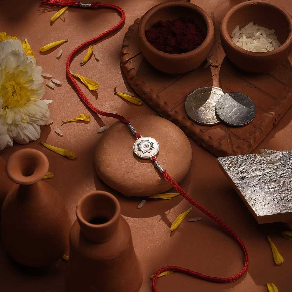 The Circle of Blessings Rakhi features a refined circular design that represents infinite blessings and protection. Crafted from 999 fine silver, this exquisite coin is adorned with a sparkling 0.01 carat lab-grown diamond, adding a subtle yet elegant brilliance. The use of lab-grown diamond ensures ethical sourcing without compromising on quality or shine. This Rakhi not only serves as a beautiful symbol of love and goodwill but also offers lasting durability thanks to its premium silver craftsmanship. Perfect for celebrating the bond of Raksha Bandhan with a meaningful and sophisticated touch.